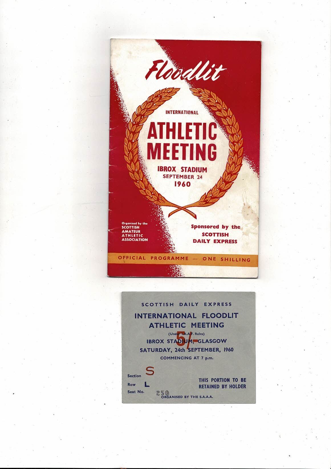 1960 International Athletic Meeting at Ibrox Stadium Programme & Ticket