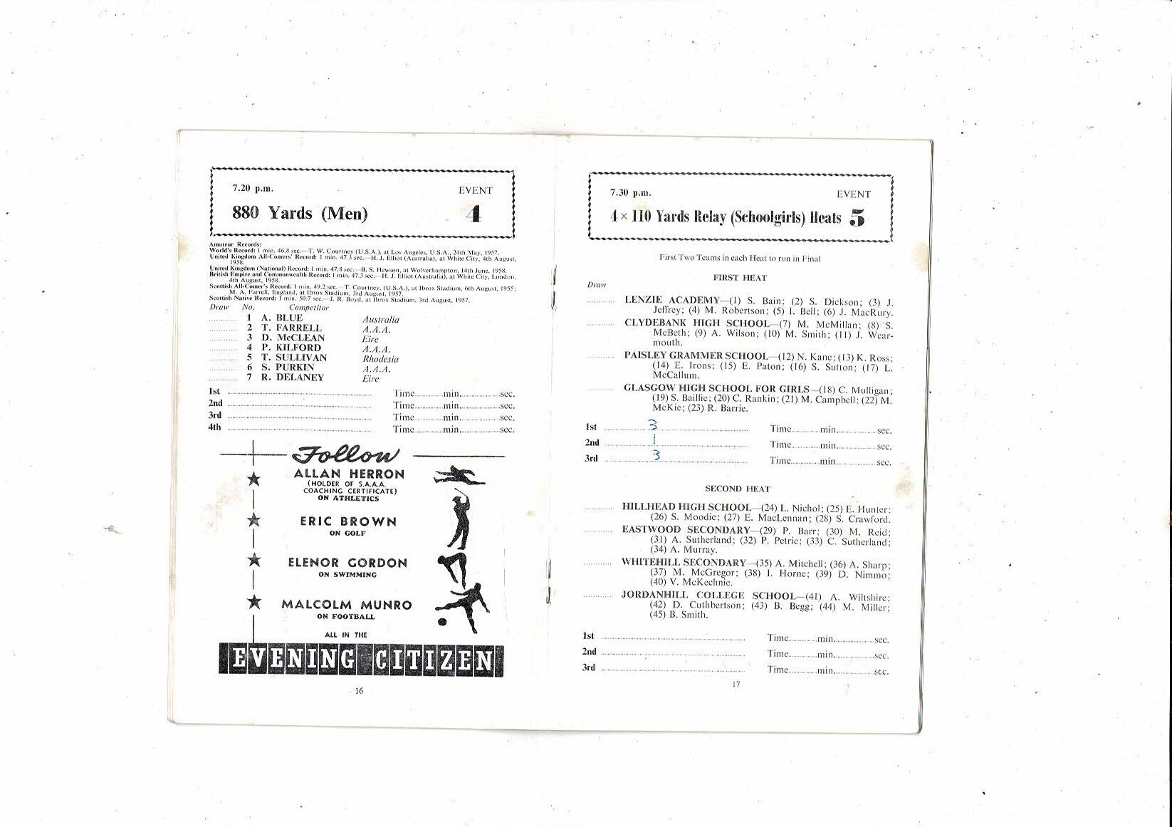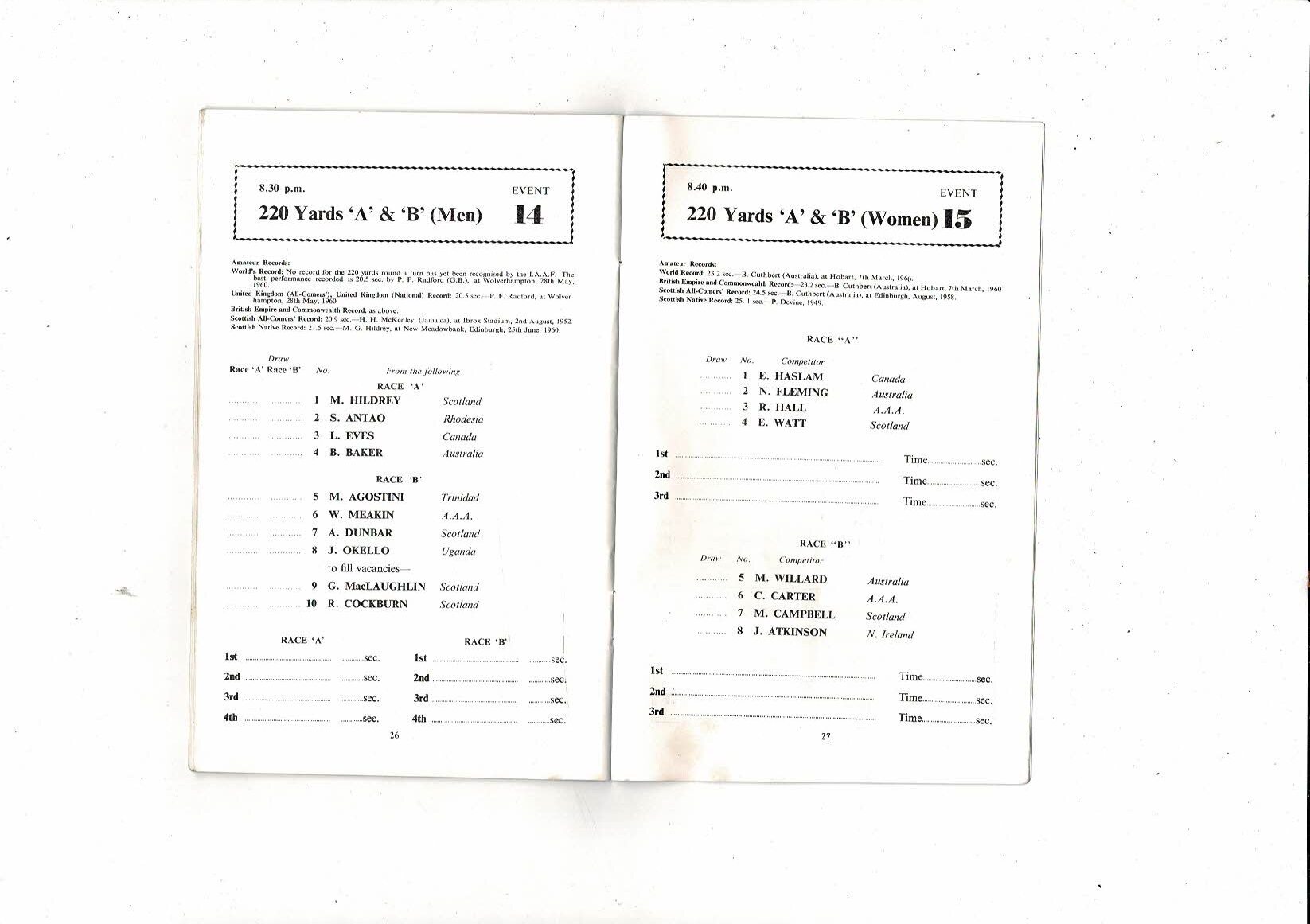 The programme is creased also has a fold with some staining & some results filled in