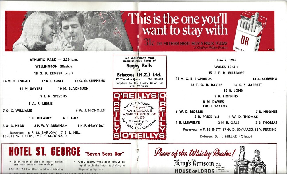 1969 Wellington v Wales International Rugby Union Programme