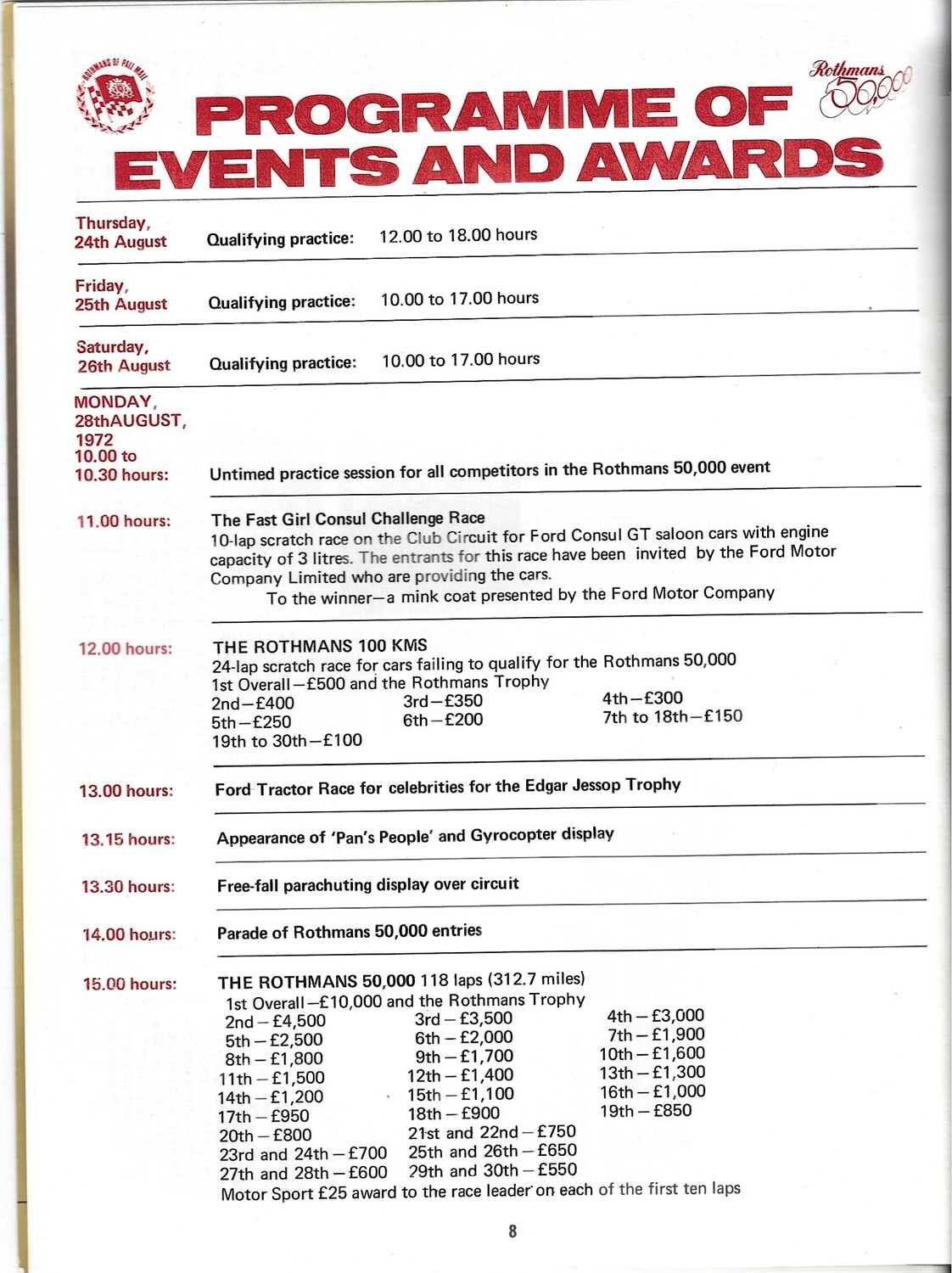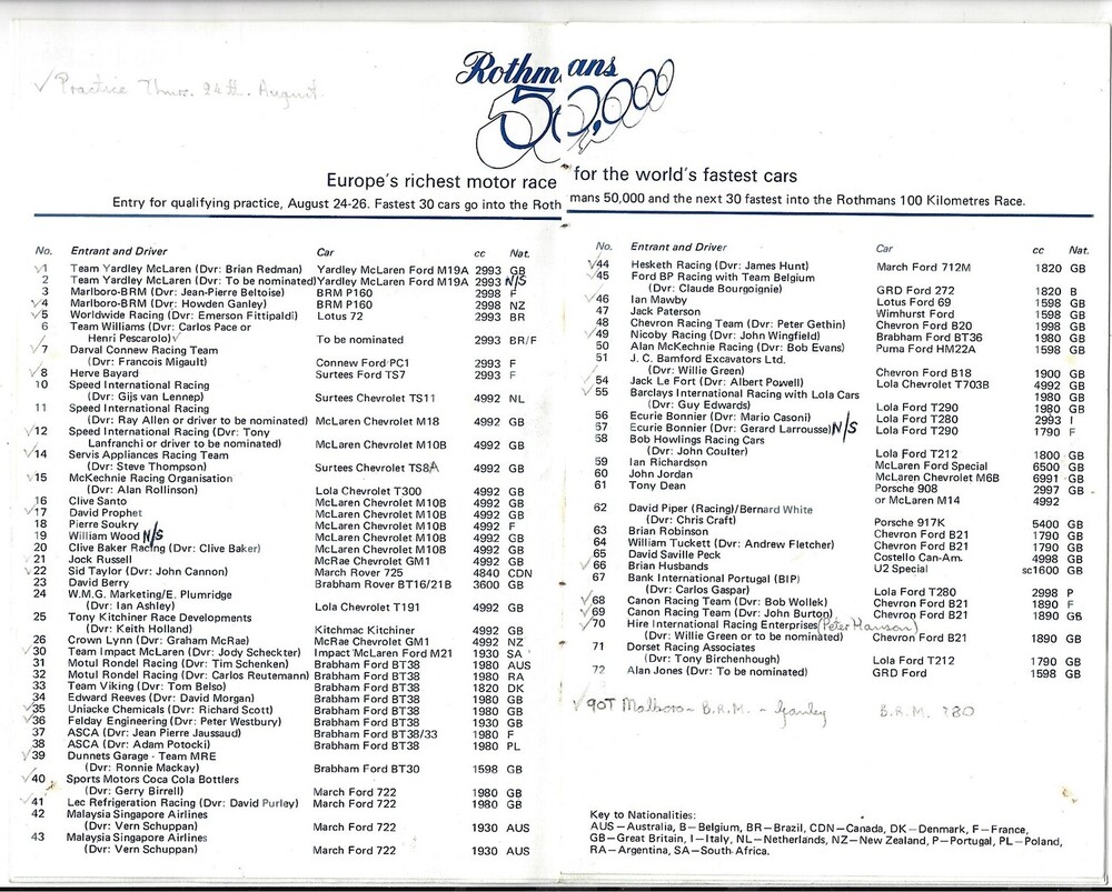 1972 Brands Hatch Rothmans 50,000 Meeting (28/08/1972) motor racing programme & Entry List & Lap Chart Brochure