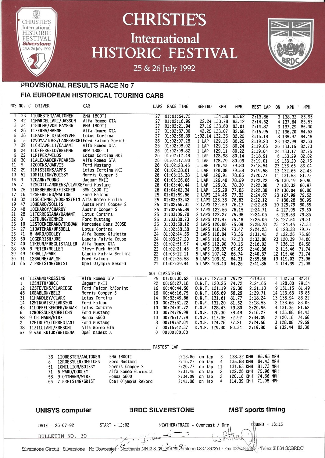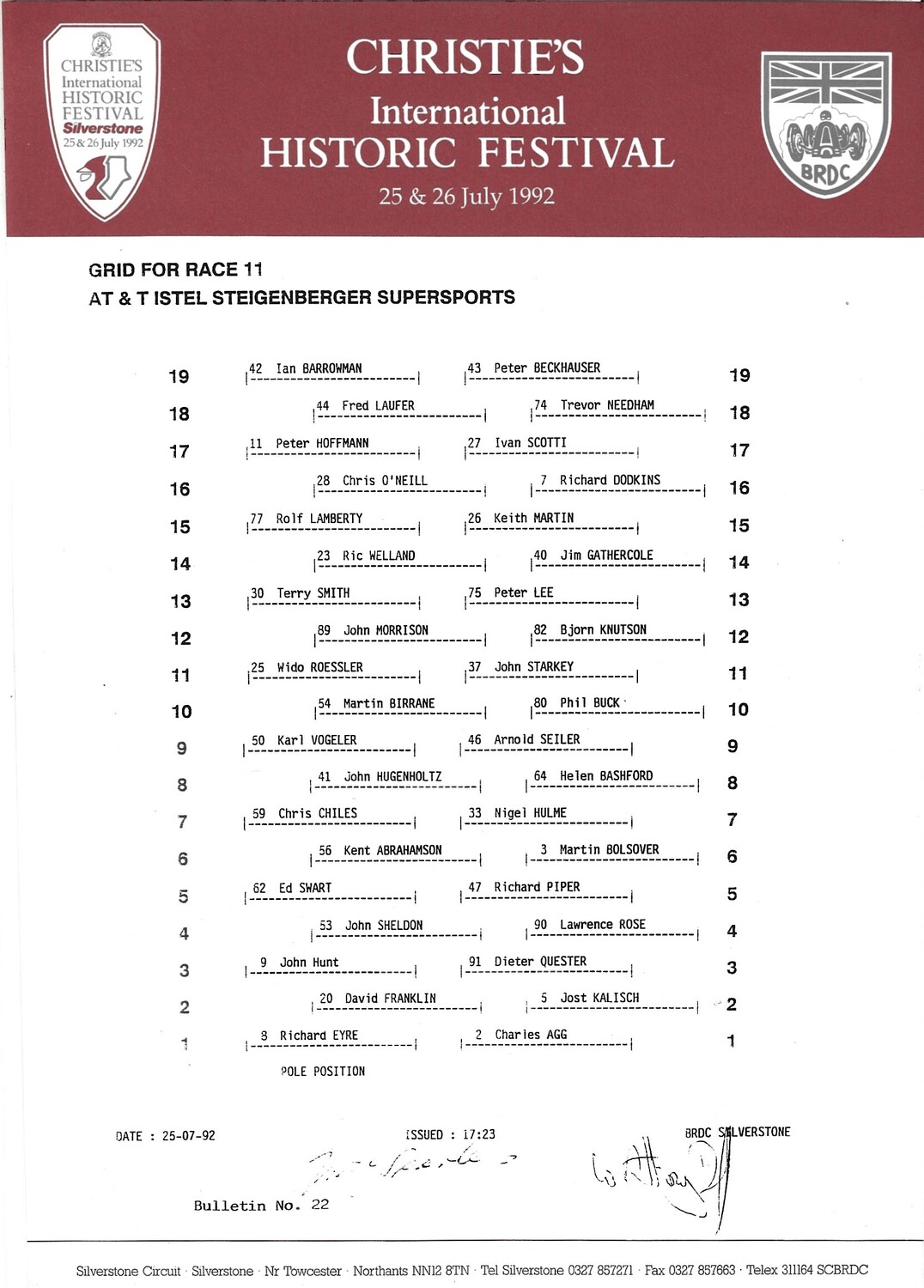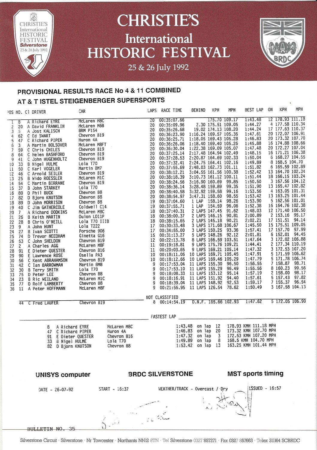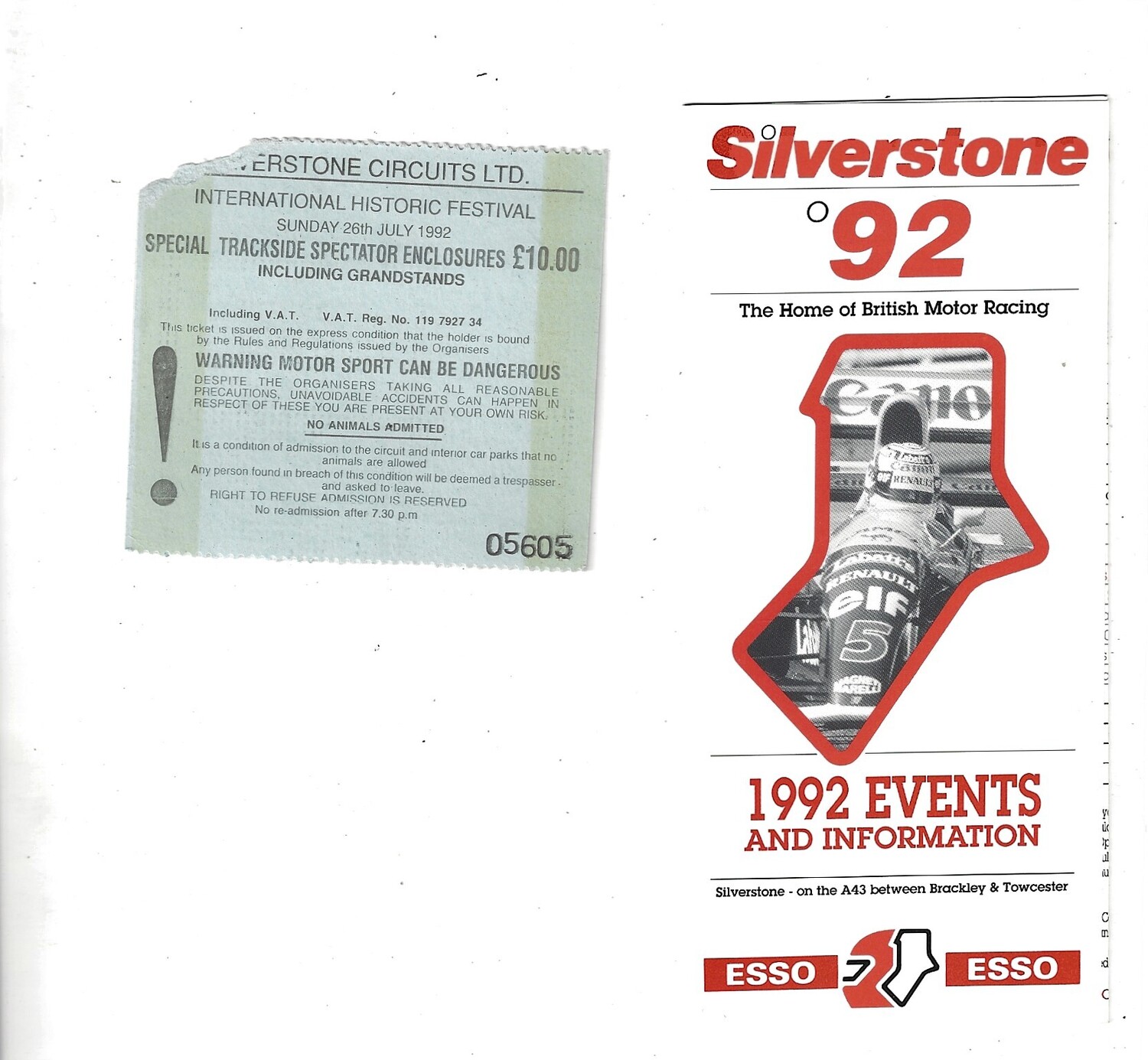 1992 Silverstone Christie's International Historic Festival Meeting (25-26/07/1992) Motor Racing Programme, Race Card, Event Entry Ticket & Practice/Result Timing Sheets