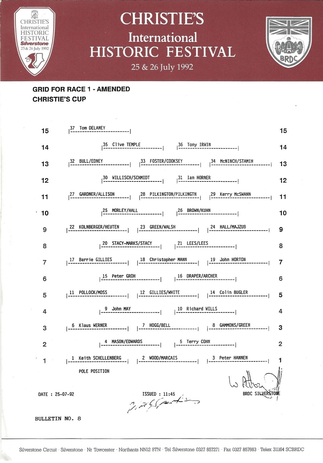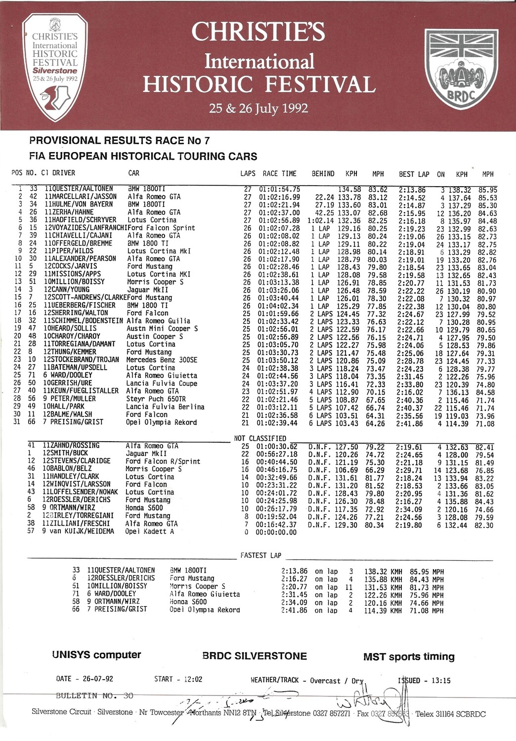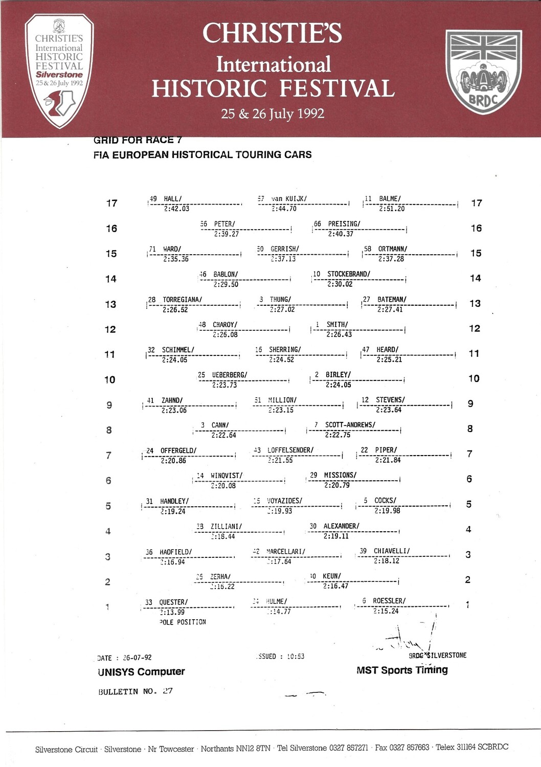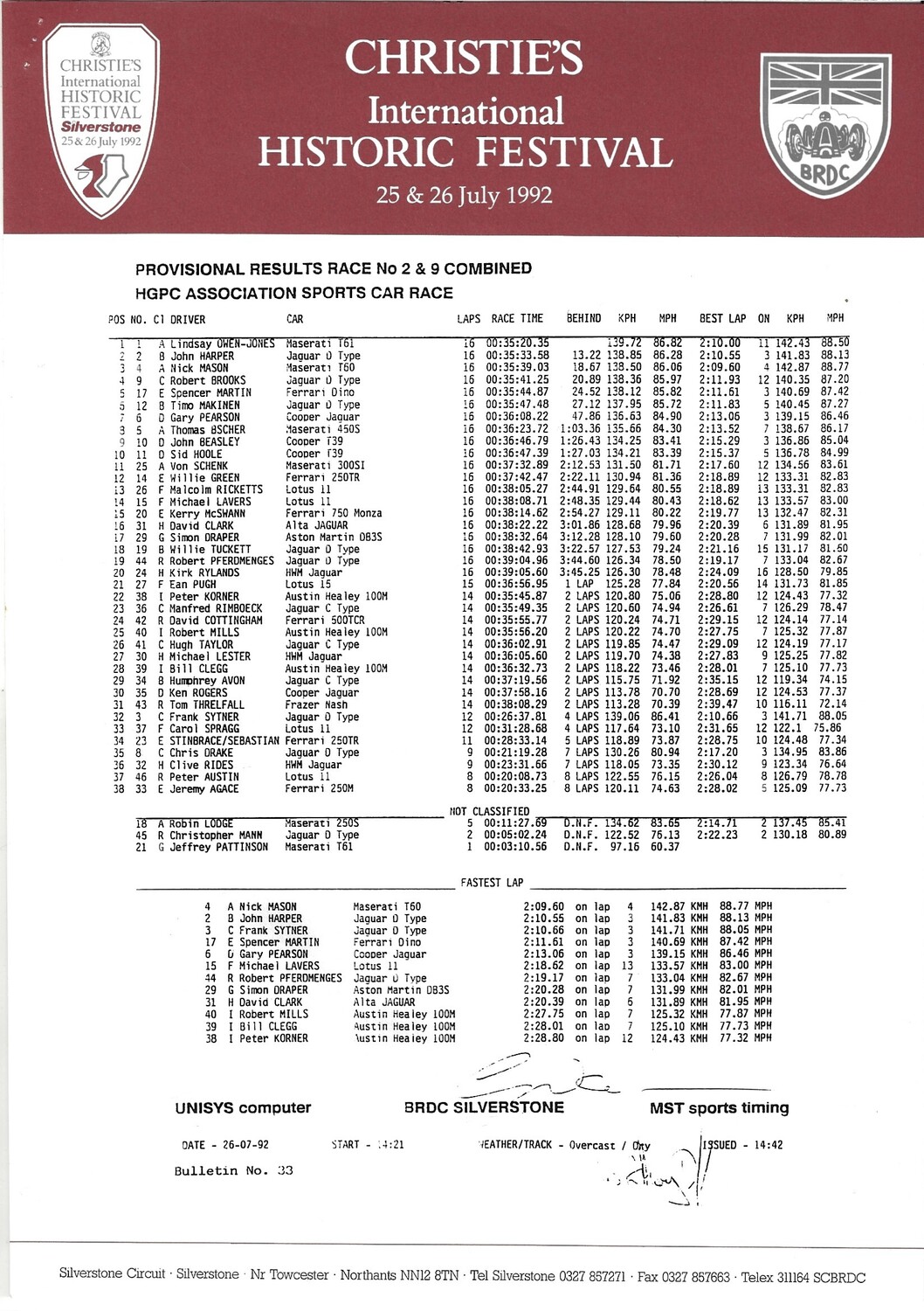 1992 Silverstone Christie's International Historic Festival Meeting (25-26/07/1992) Motor Racing Programme, Race Card, Event Entry Ticket & Practice/Result Timing Sheets