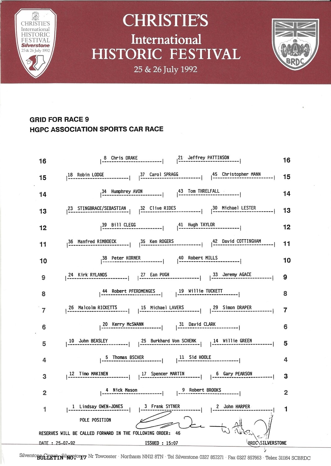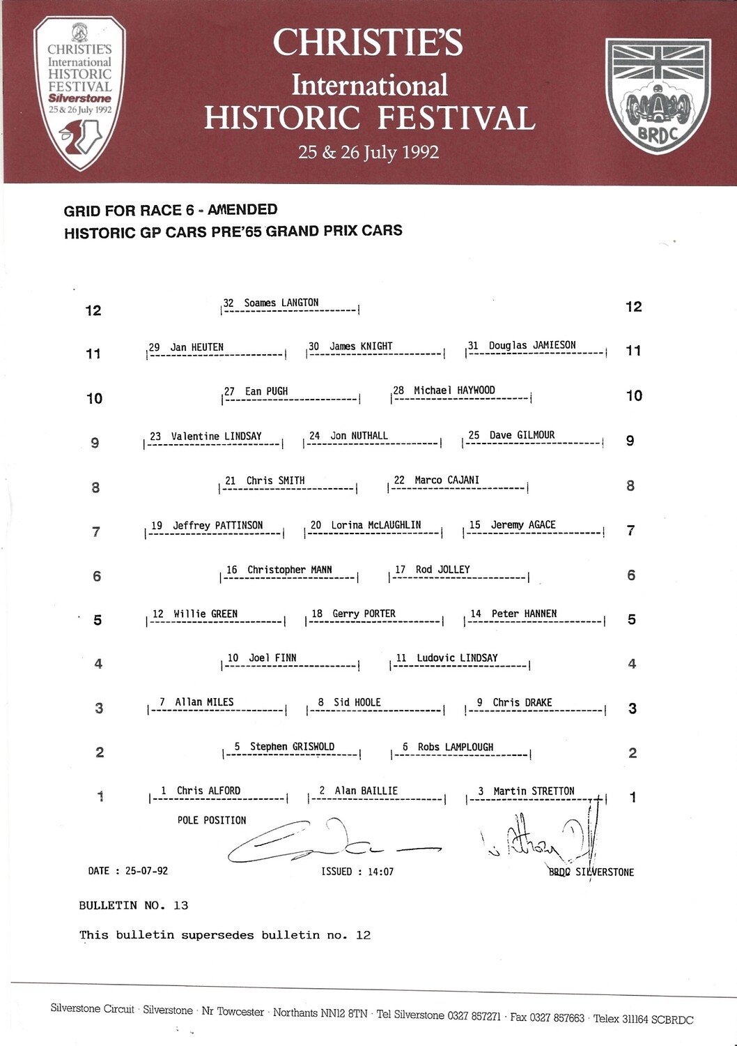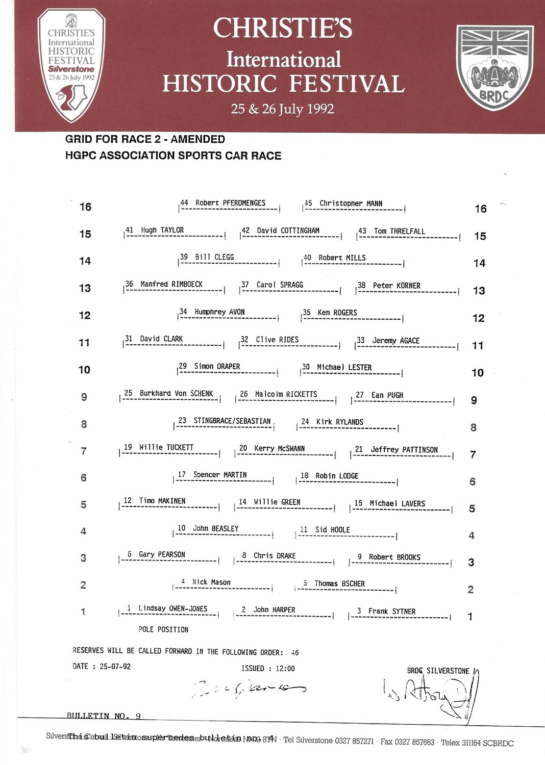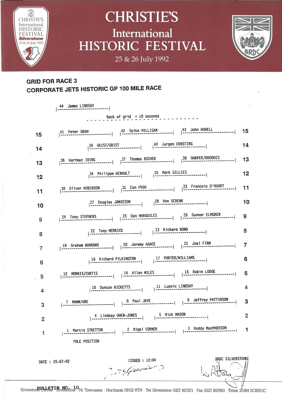 1992 Silverstone Christie's International Historic Festival Meeting (25-26/07/1992) Motor Racing Programme, Race Card, Event Entry Ticket & Practice/Result Timing Sheets