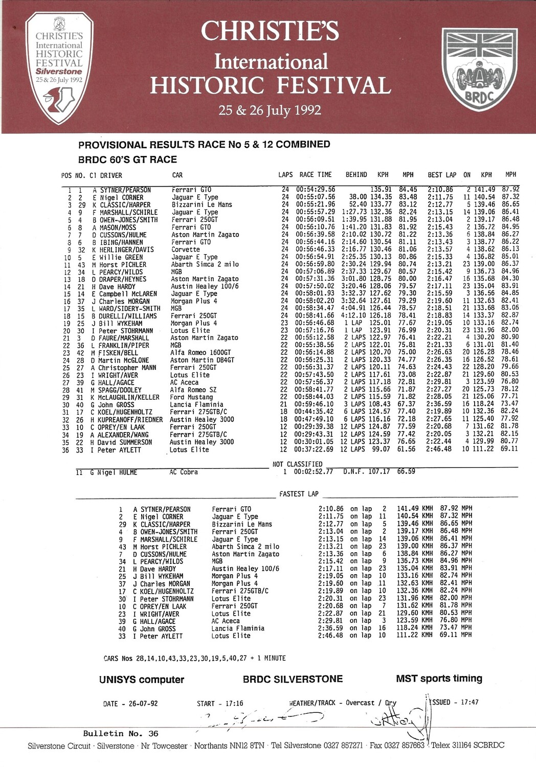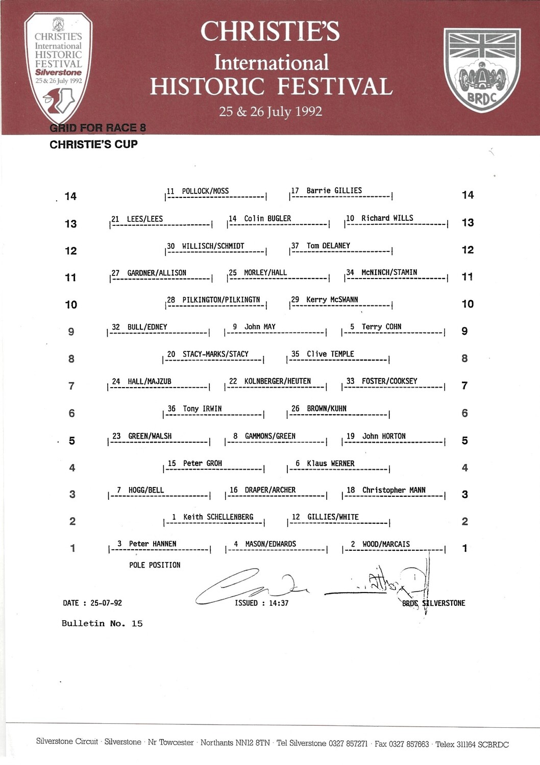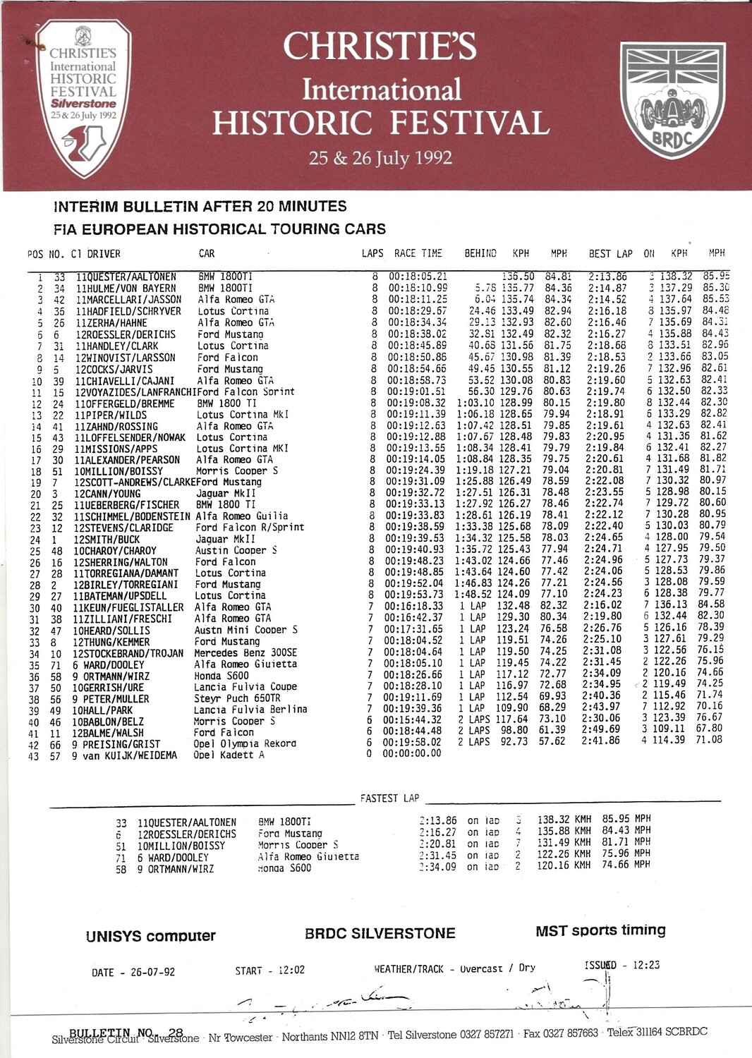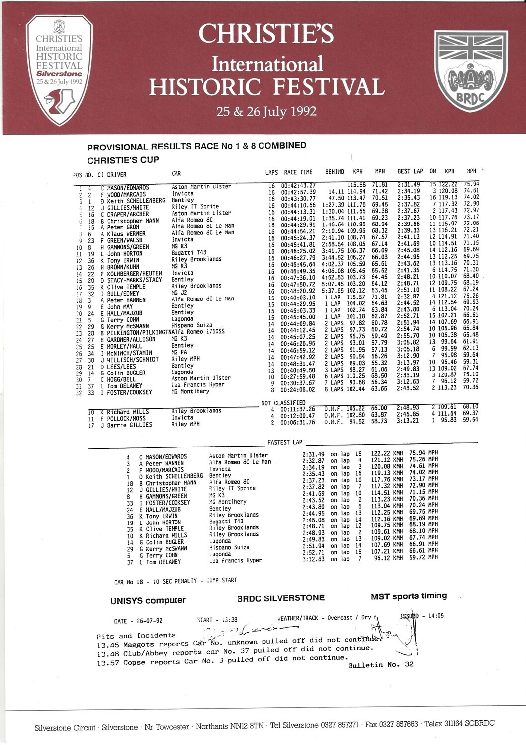 1992 Silverstone Christie's International Historic Festival Meeting (25-26/07/1992) Motor Racing Programme, Race Card, Event Entry Ticket & Practice/Result Timing Sheets