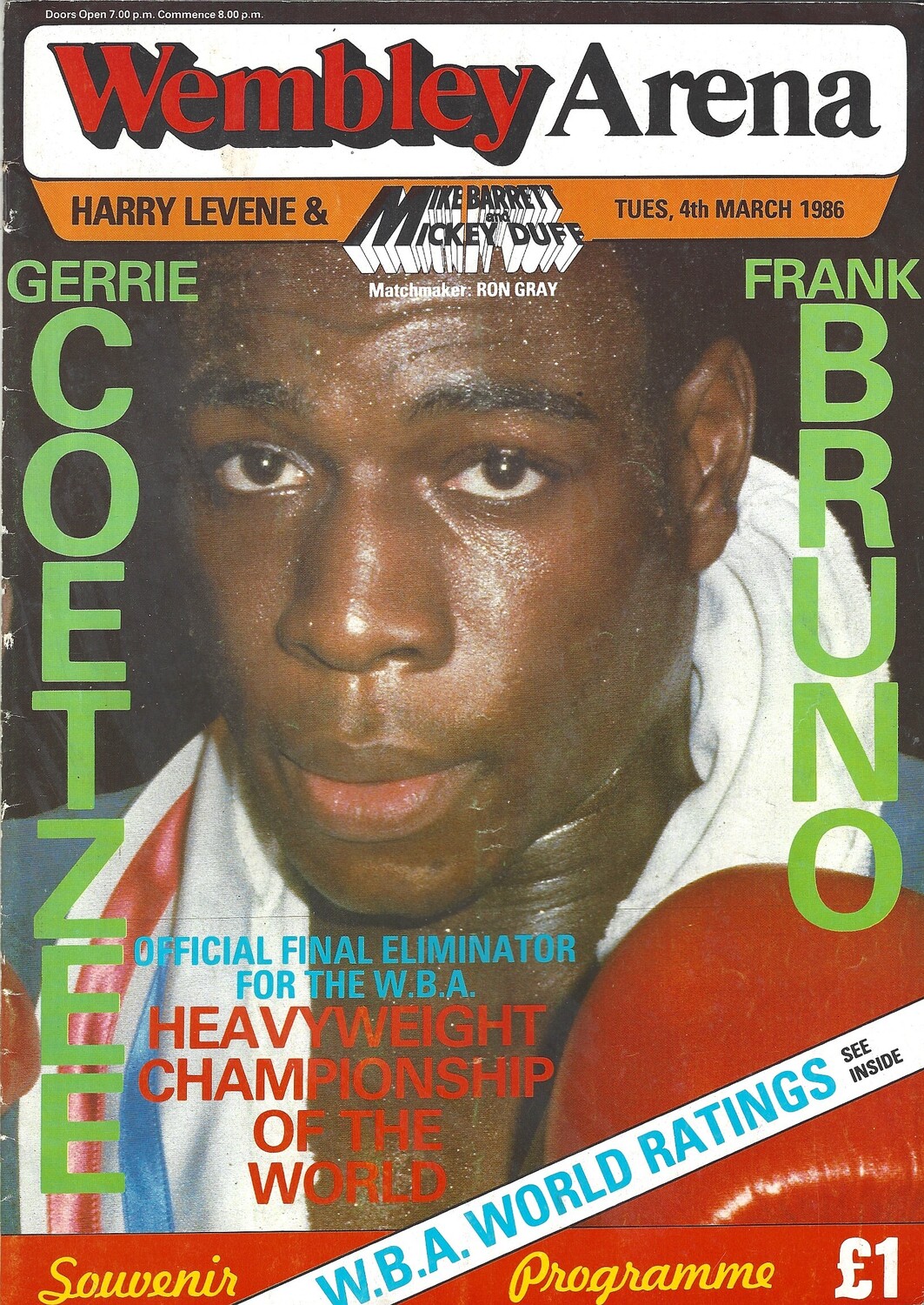 1986 Gerrie Coetzee v Frank Bruno Boxing Programme