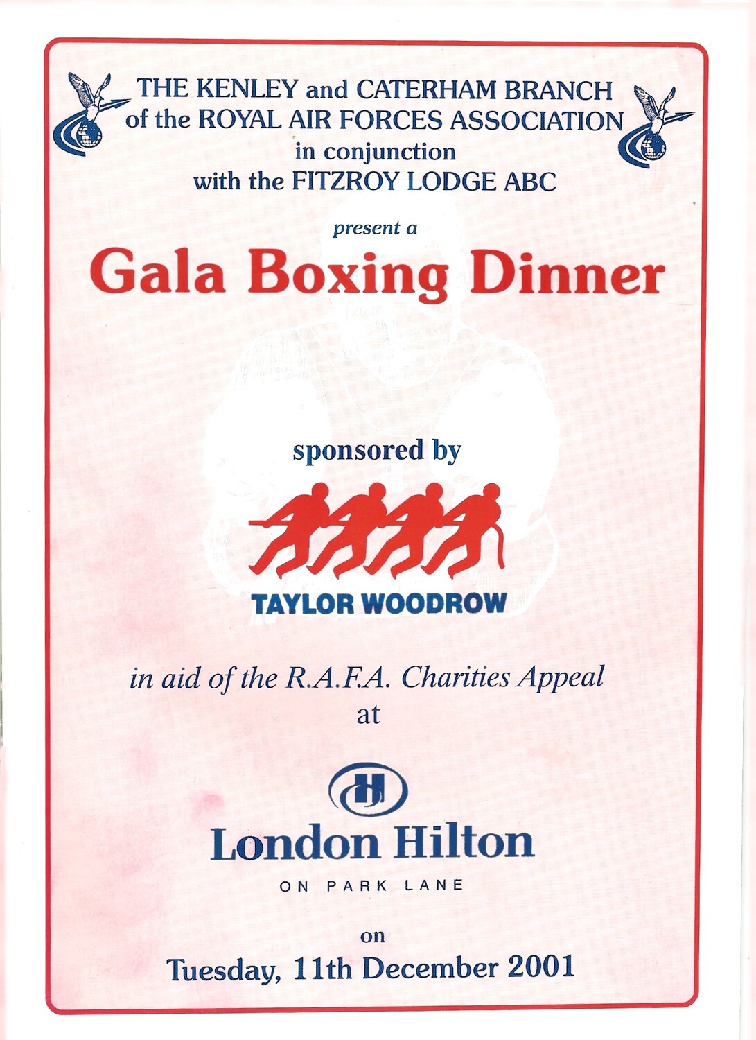 2001 Royal Air Forces Association Gala Boxing Dinner Programme