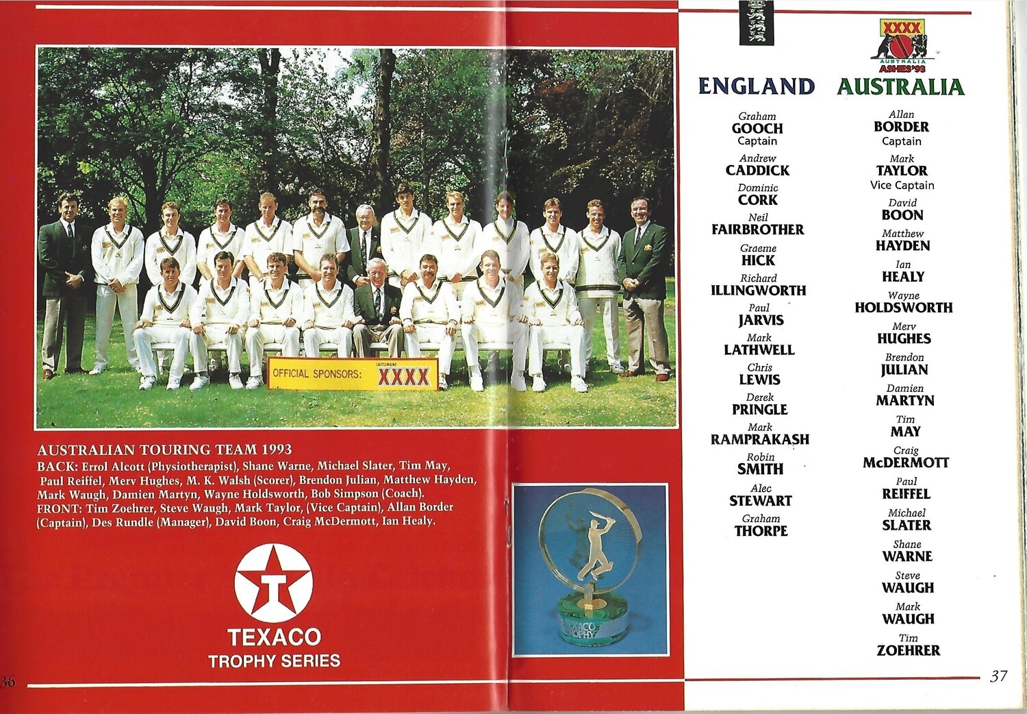 1993 England v Australia Texaco Trophy Series Cricket Programme