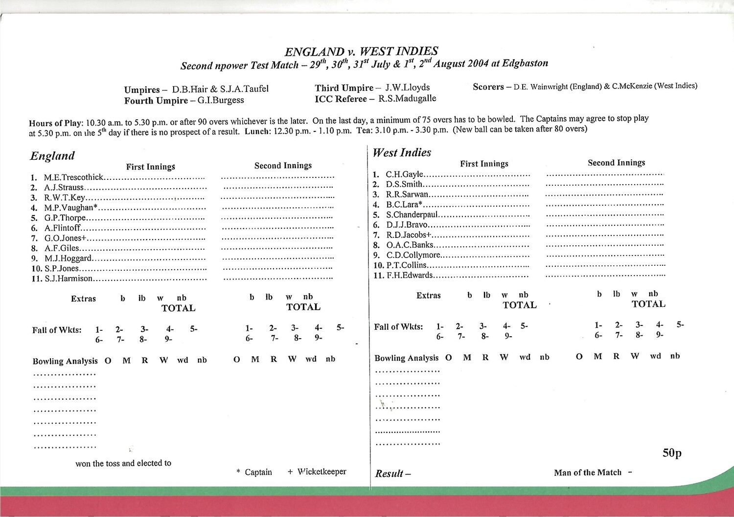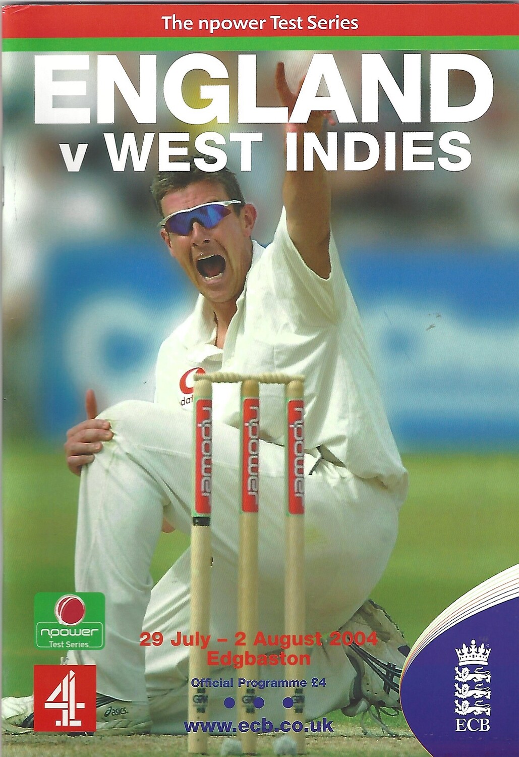 2004 England v West Indies 2nd npower Test (29/07-02/08/2004) Cricket Programme & Scorecard
