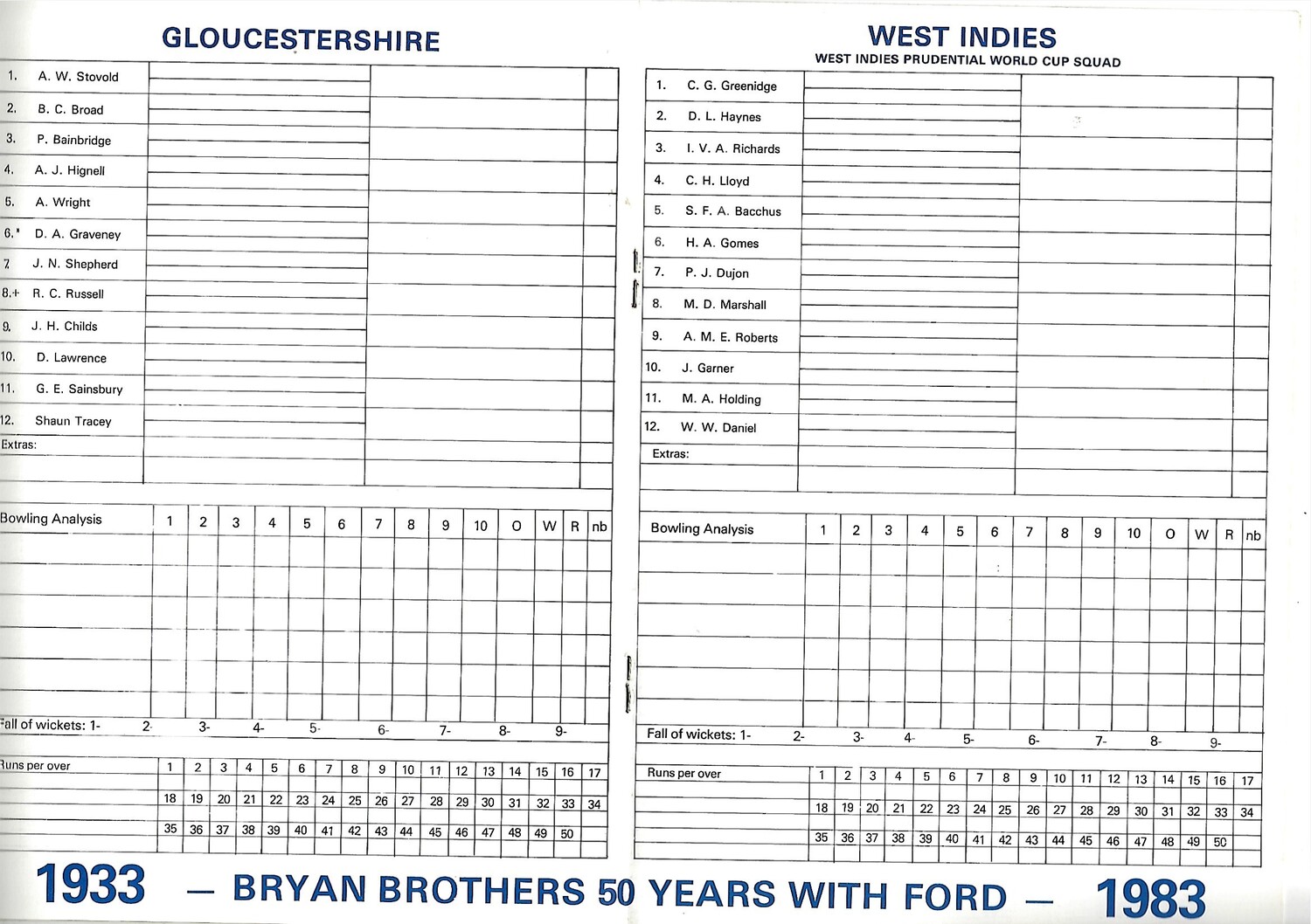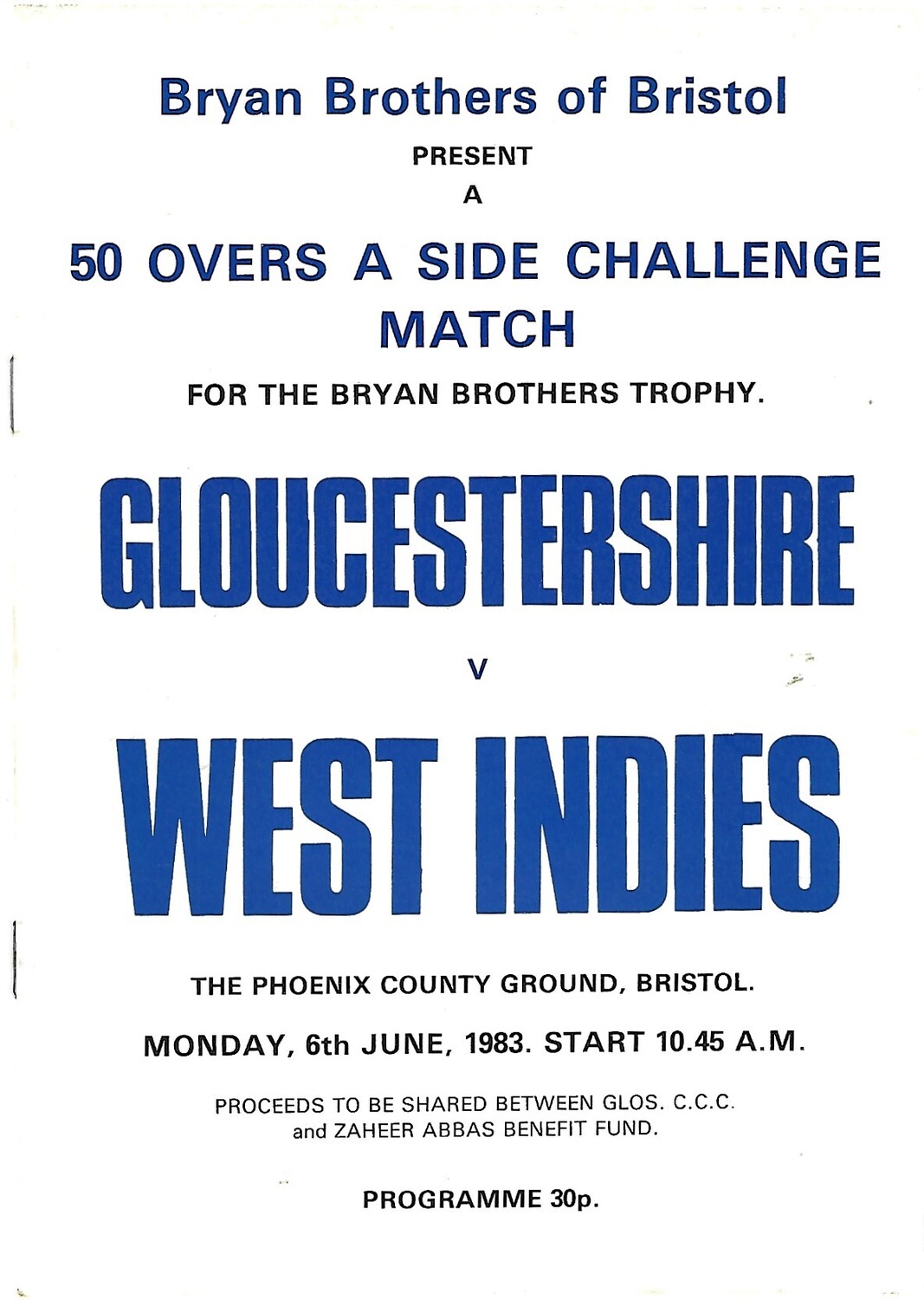 1983 Gloucestershire v West Indies Brian Brothers Trophy (06/06/1983) Challenge Cricket Match
