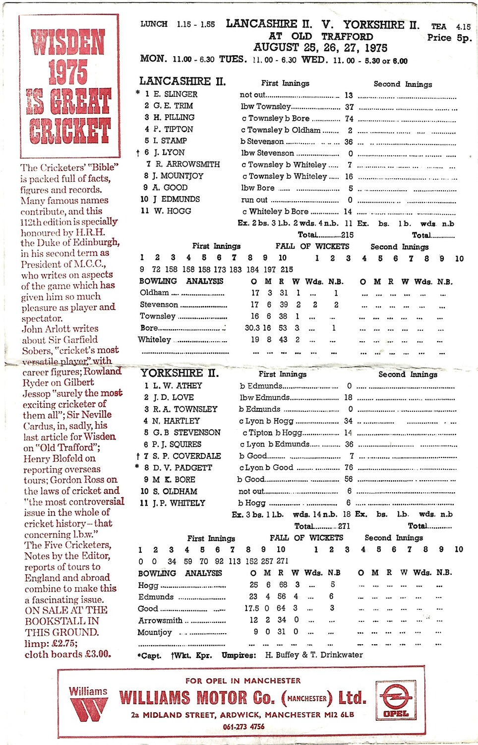 1975 Lancashire II v Yorkshire II County Match (25-27/08/1975) Cricket Scorecard