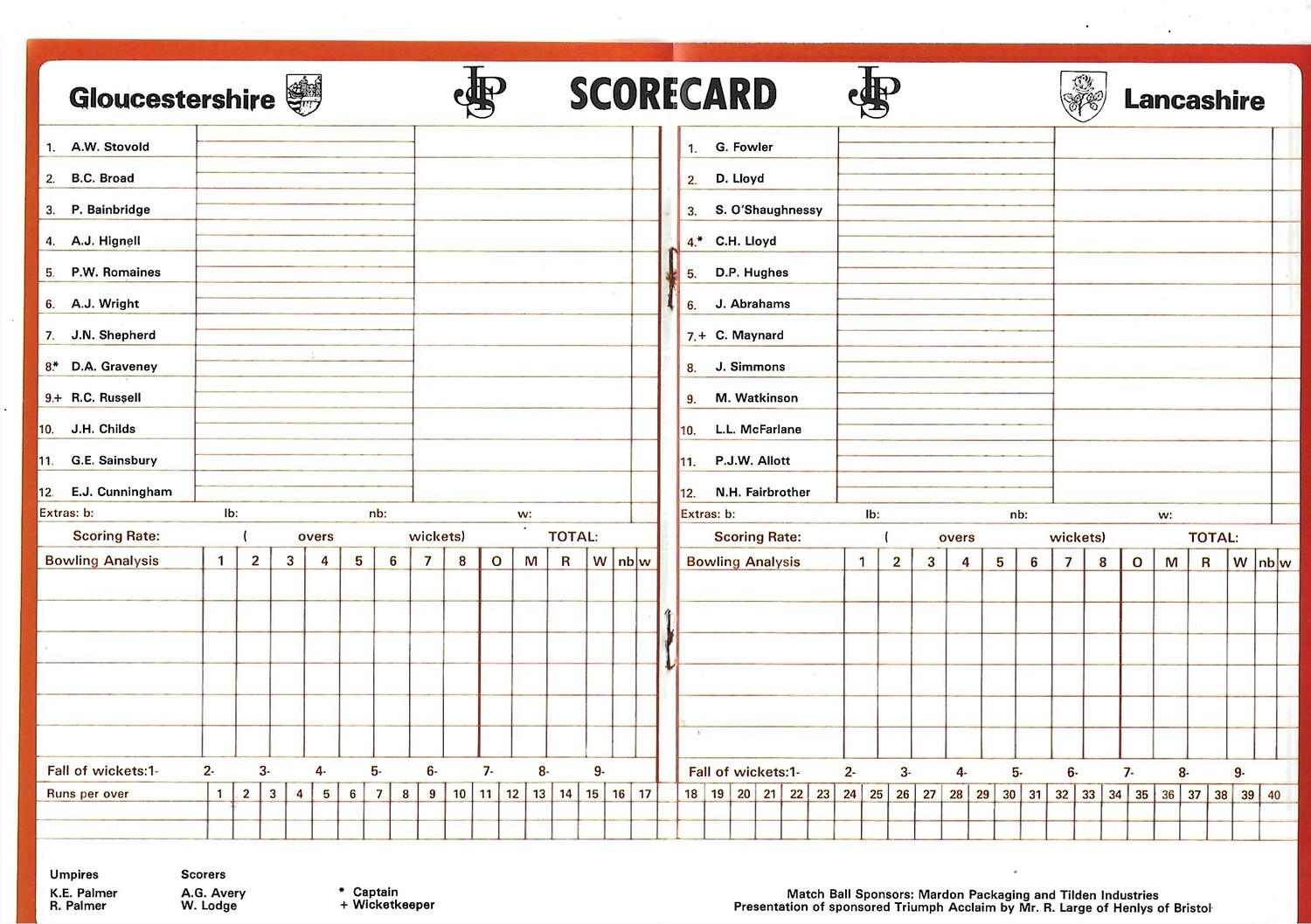 1983 Gloucestershire v Lancashire John Player Special League Match (28/08/1983) Cricket Programme & Scorecard