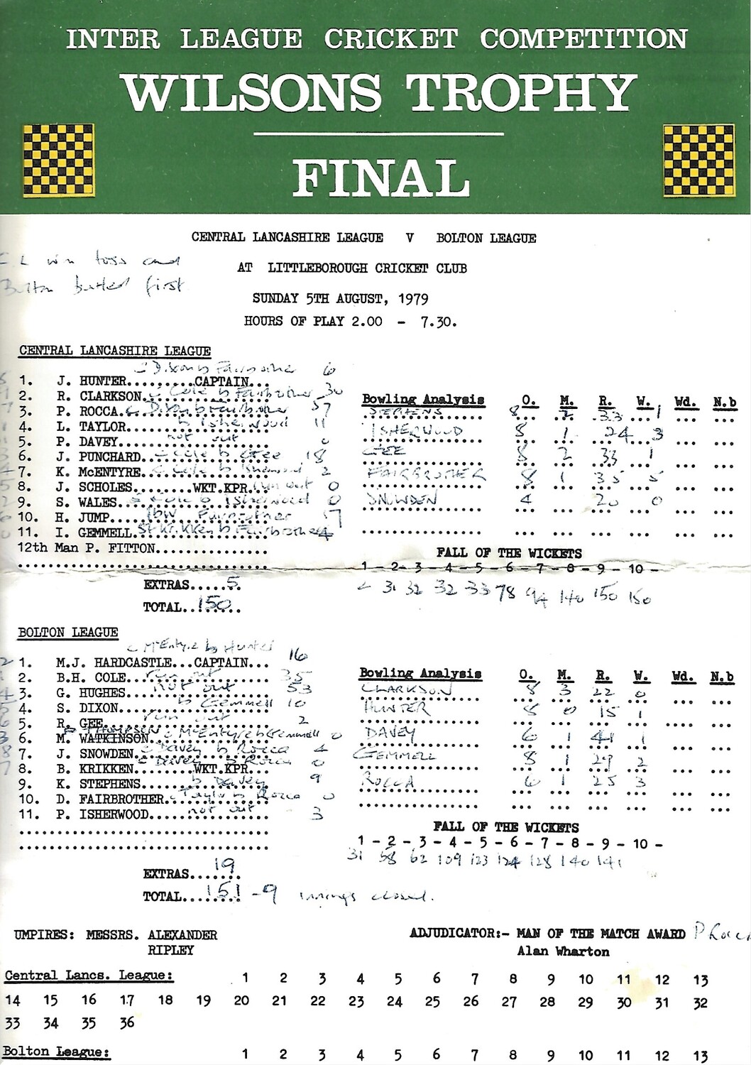 1979 Central Lancashire League v Bolton League Wilson Trophy Final (05/08/1979) Cricket Scorecard