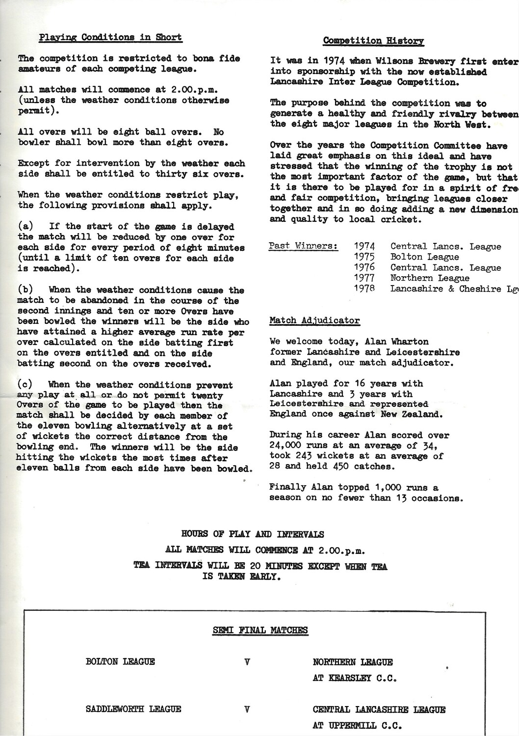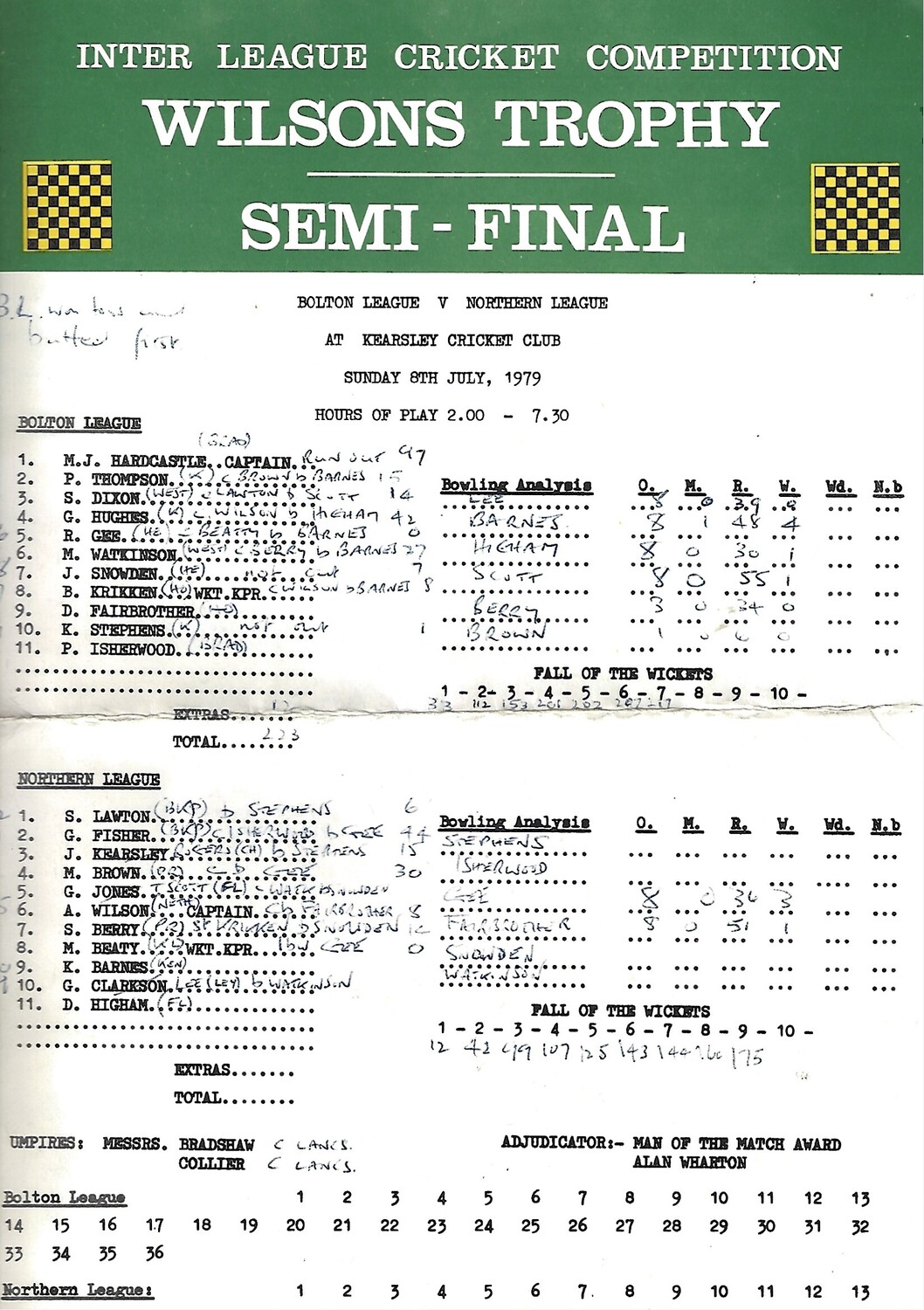 1979 Bolton League v Northern League Wilson Trophy Semi Final (08/07/1979) Cricket Scorecard