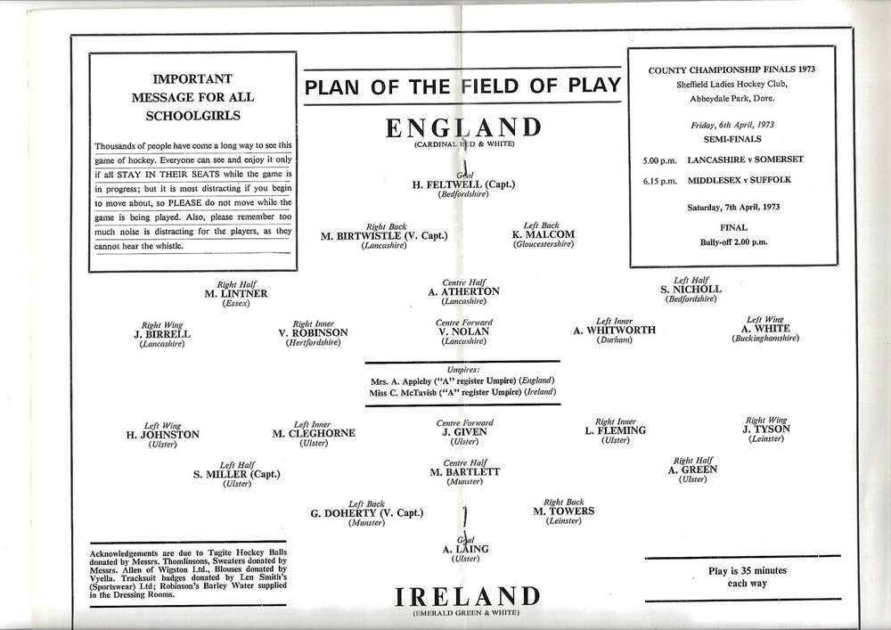 1973 England v Ireland Women’s International Hockey Programme