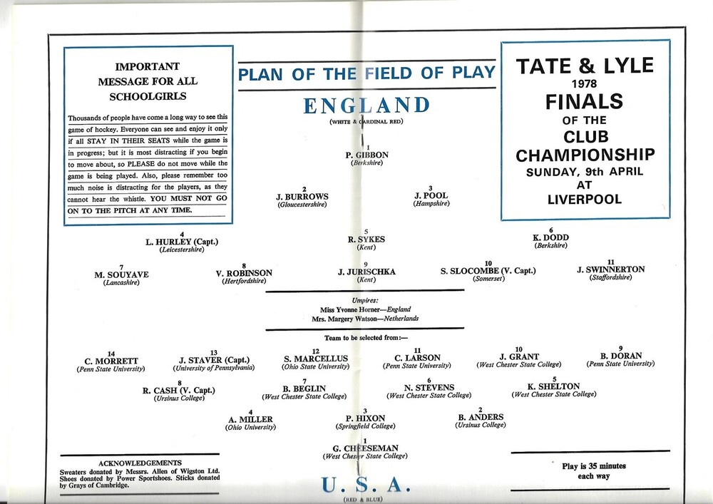 1978 England v United States of America Women’s International Hockey Programme