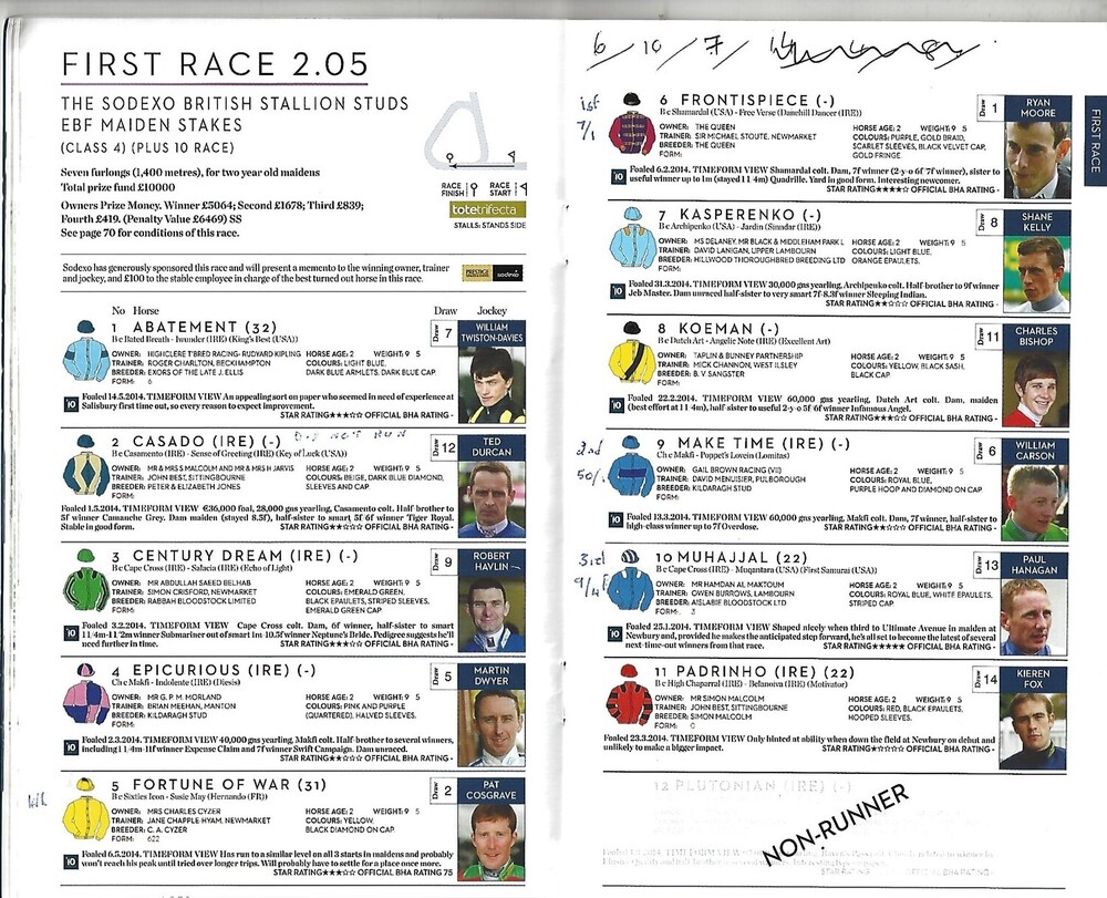 2016 Ascot Horse Racing Racecard (03/09/2016) Festival of Food & Wine Racing Weekend