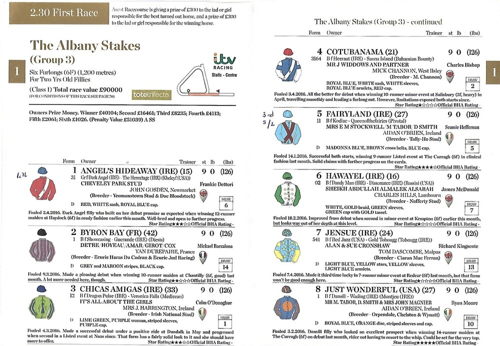 2018 Ascot Horse Racing Racecard (2/06/2018) Royal Ascot - Fourth Day