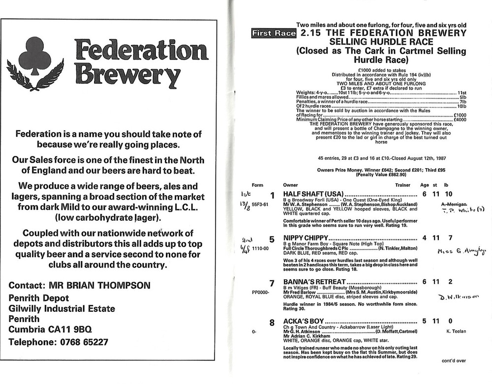 1987 Cartmel Summer Bank Holiday Meeting (31/08/1987) Horse Racing Racecard