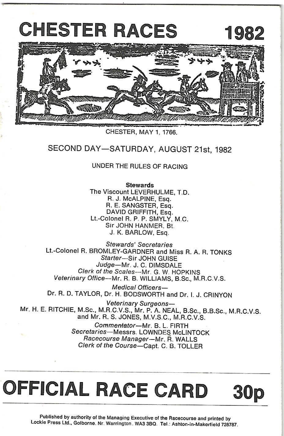 1982 Chester Meeting (21/08/1982) Horse Racing Racecard