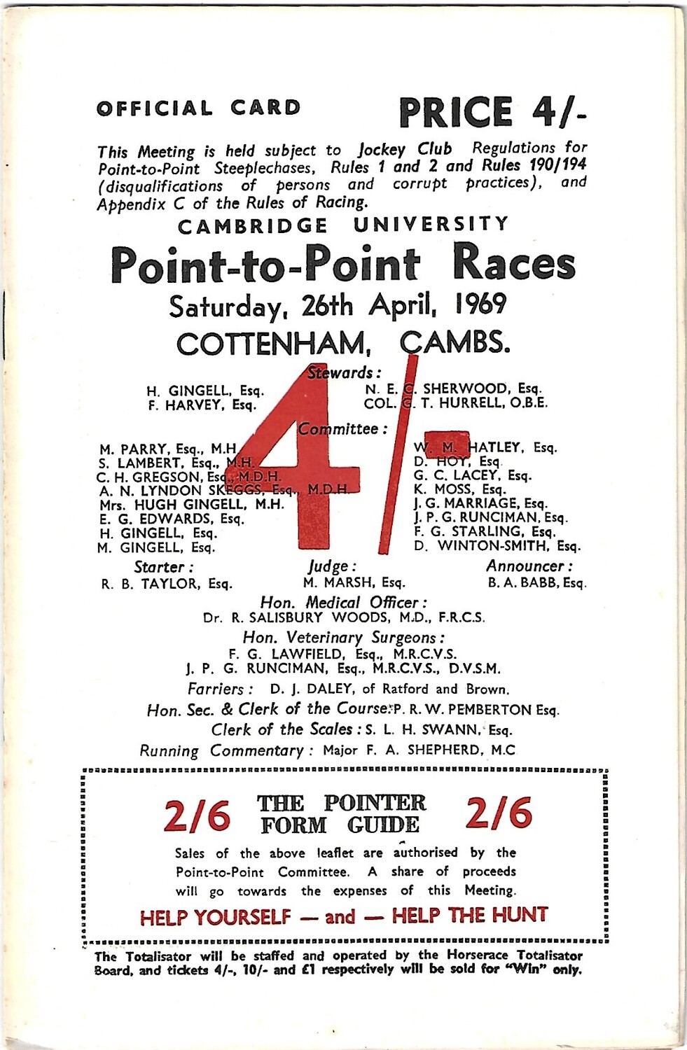 1969 Cottenham Point to Point Meeting (26/04/1969) Horse Racing Racecard