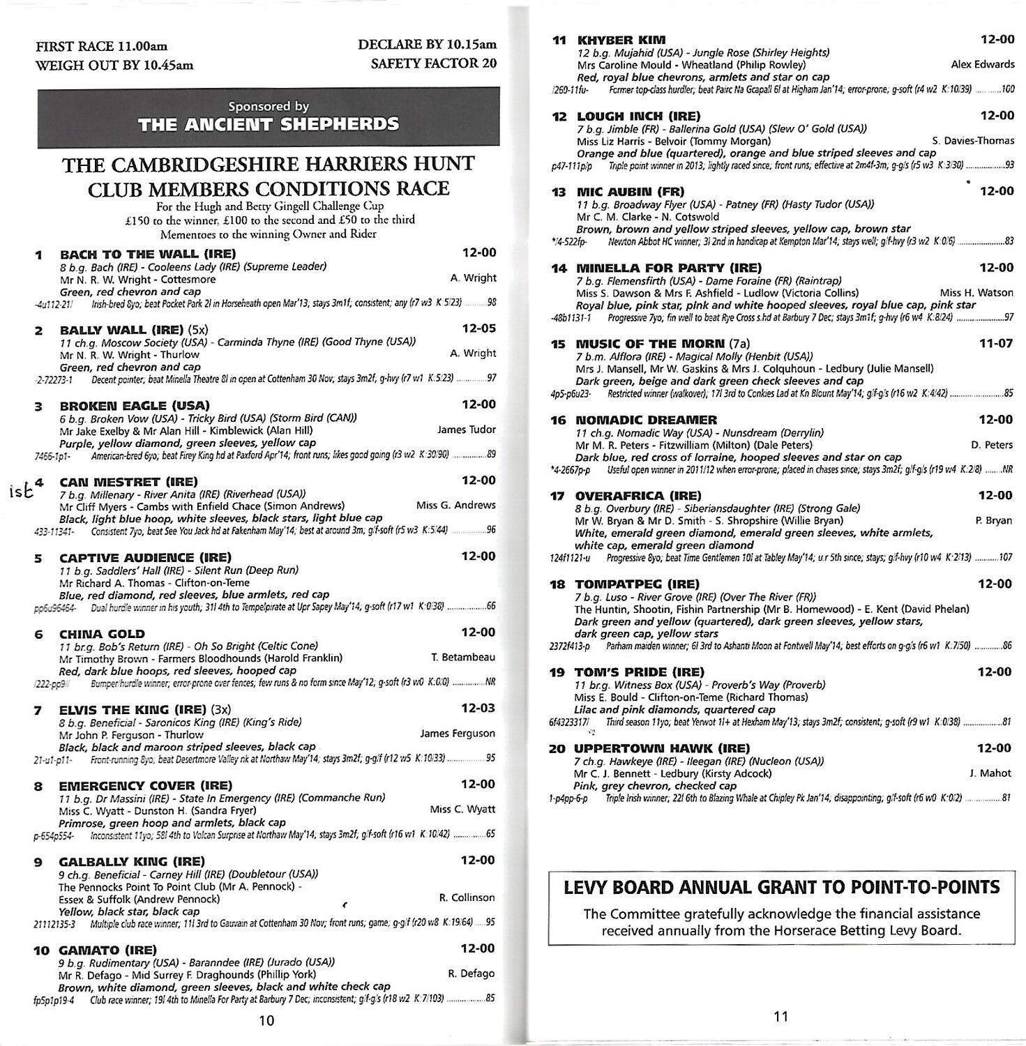 2014 Cottenham Point to Point Meeting (28/12/2014) Horse Racing Racecard