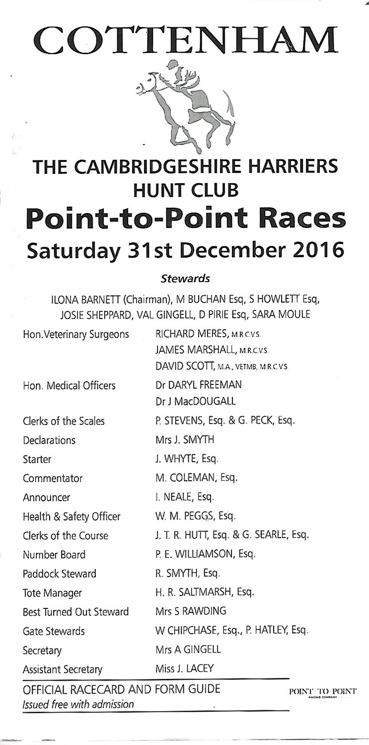 2016 Cottenham Point to Point Meeting (31/12/2016) Horse Racing Racecard
