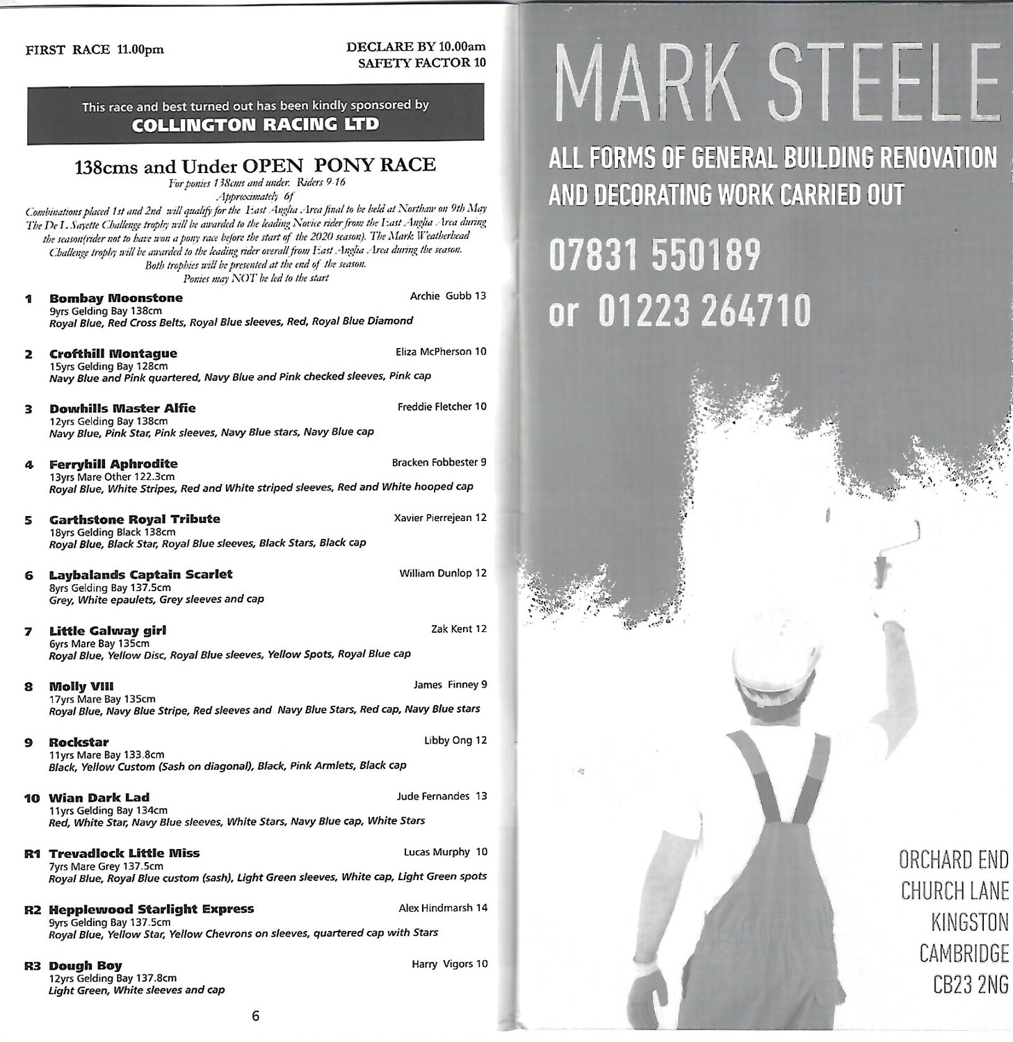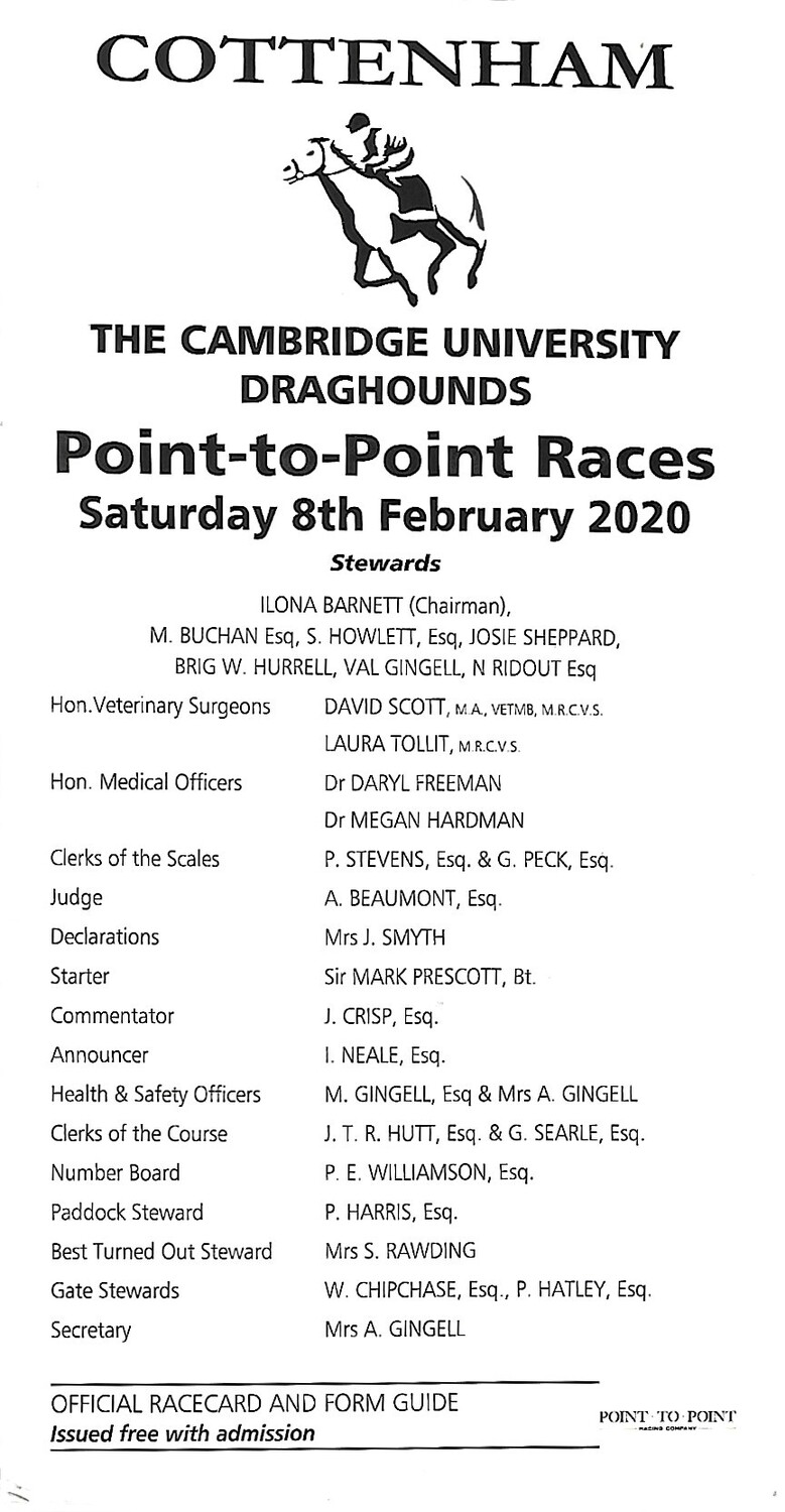 2020 Cottenham Point to Point Meeting (08/02/2020) Horse Racing Racecard