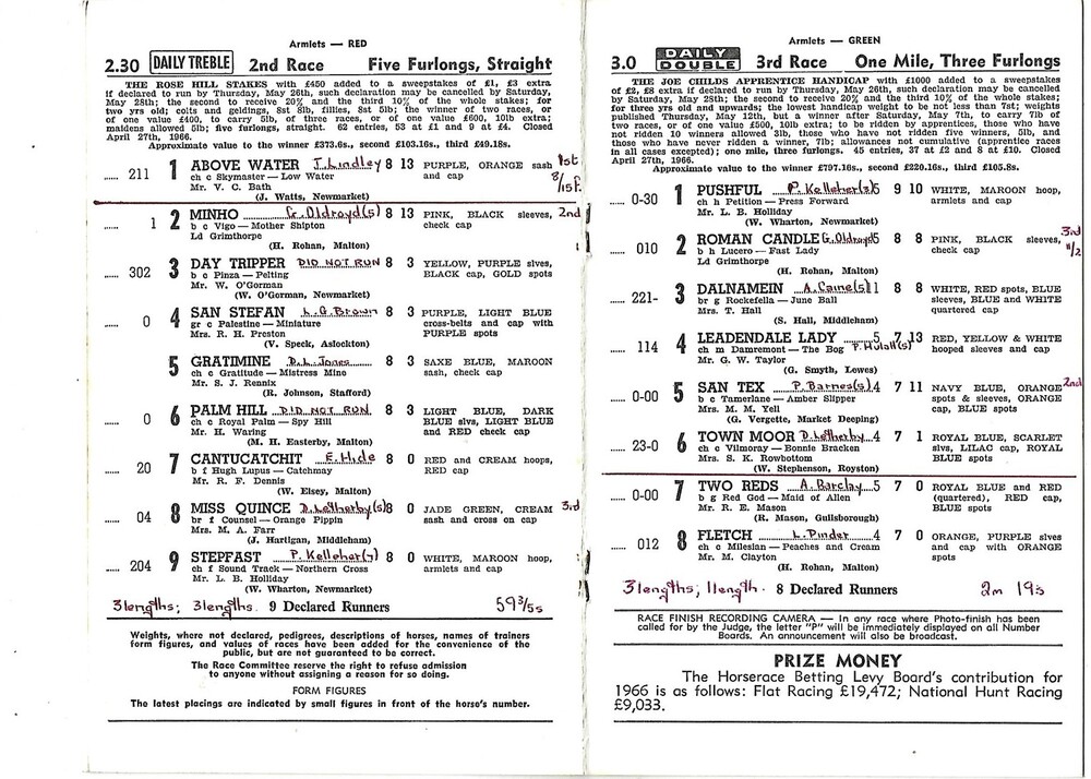1966 Doncaster Whitsunday Meeting (30/05/1966) Horse Racing Racecard