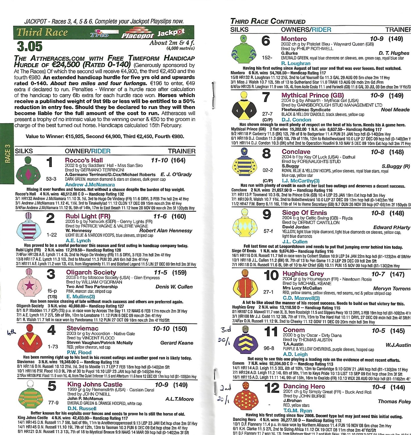 2010 Fairyhouse At The Races Meeting (20/02/2010) Horse Racing Racecard