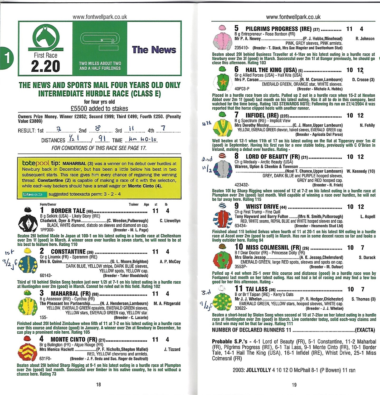 2004 Fontwell Park May Day Bank Holiday Meeting (03/05/2004) Horse Racing Racecard