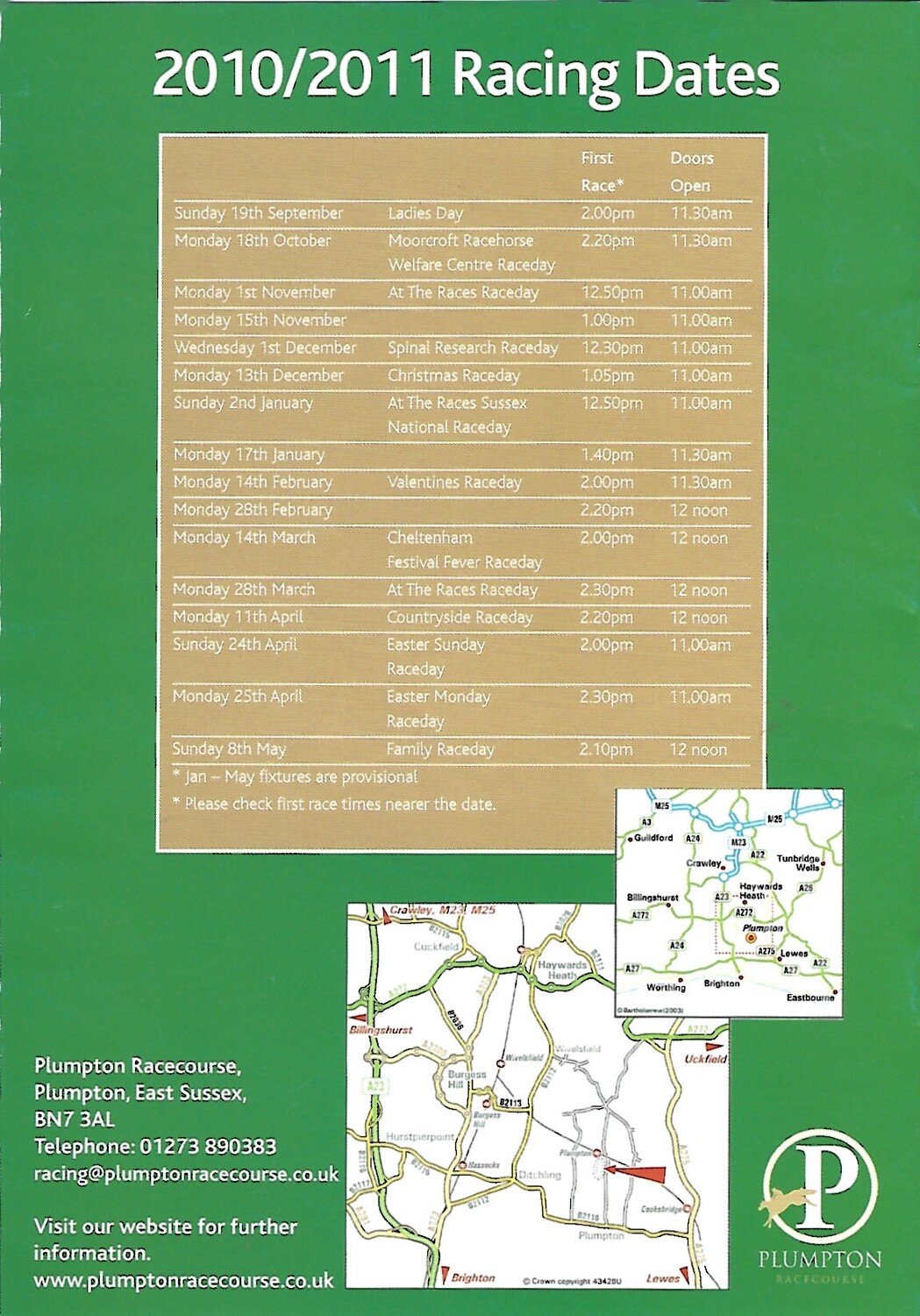 2010 Plumpton Racecourse Racedays & Events Pamphlet