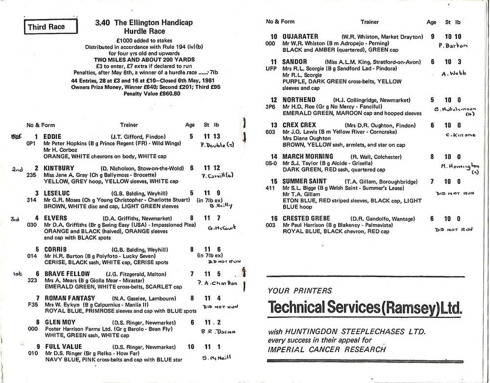 1981 Huntingdon Race Meeting (25/05/1981) Horse Racing Racecard