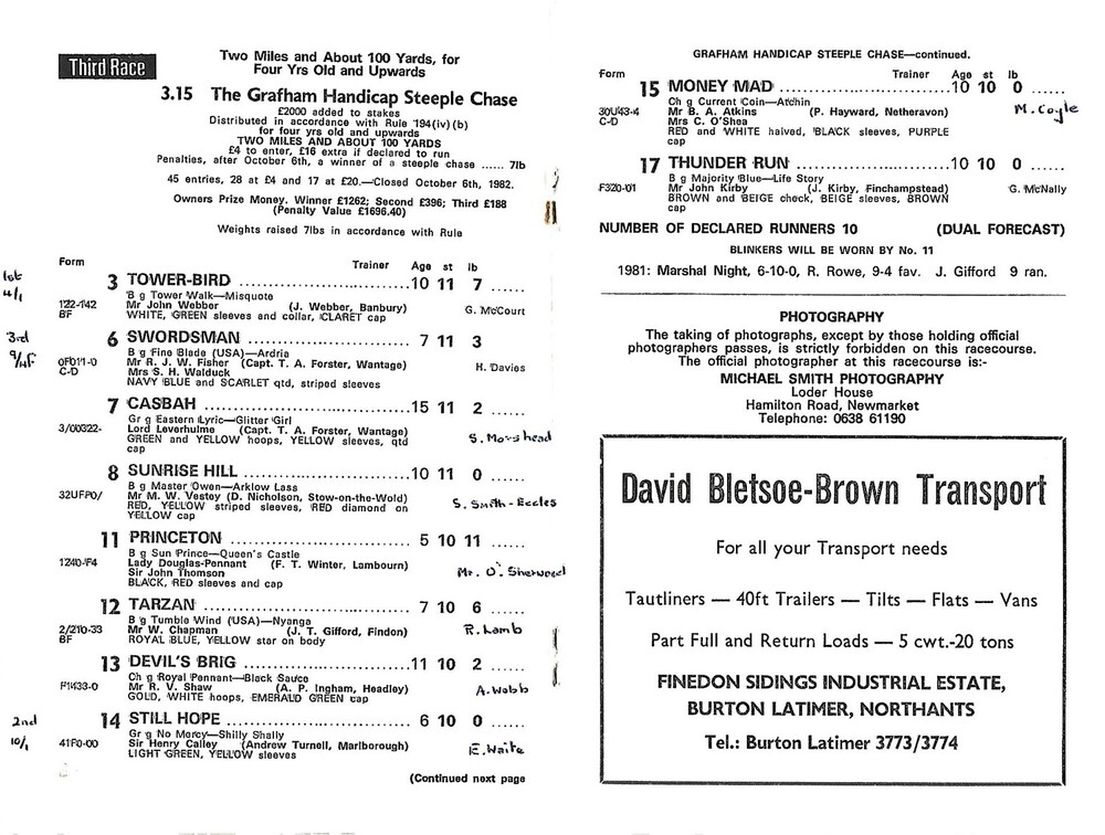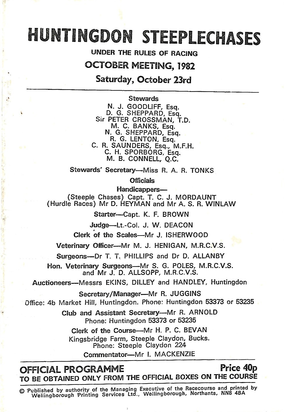1982 Huntingdon October Race Meeting (23/10/1982) Horse Racing Racecard