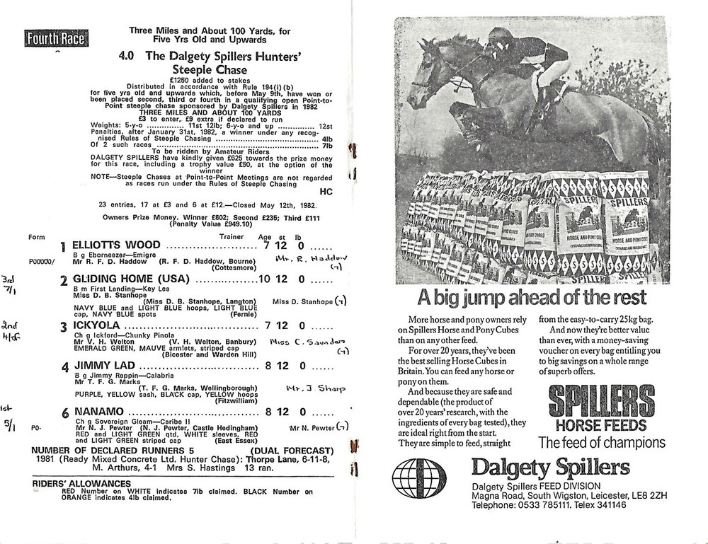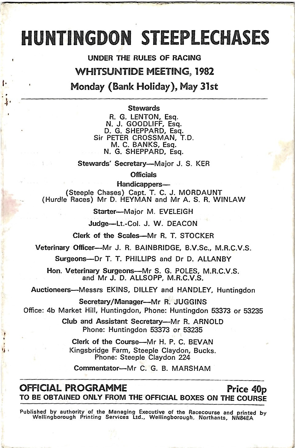 1982 Huntingdon Whitsunday Race Meeting (31/05/1982) Horse Racing Racecard