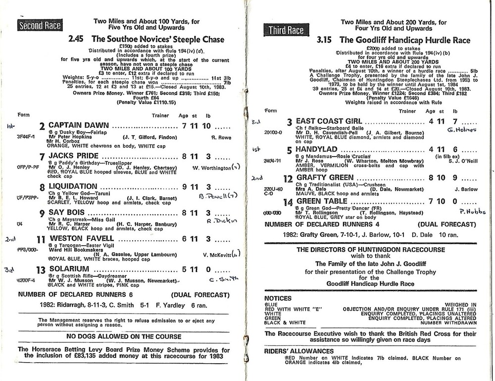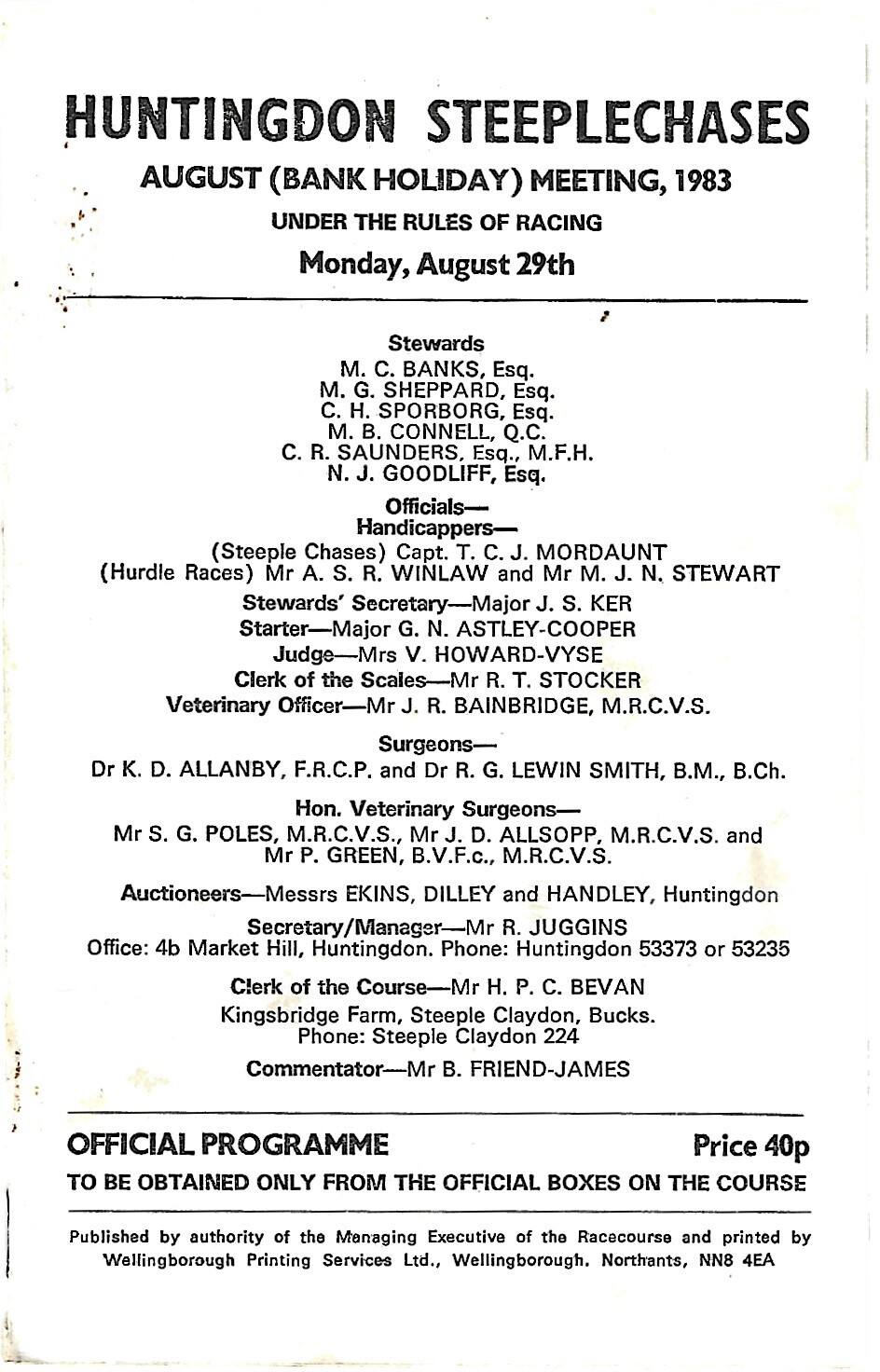 1983 Huntingdon August Bank Holiday Race Meeting (29/08/1983) Horse Racing Racecard
