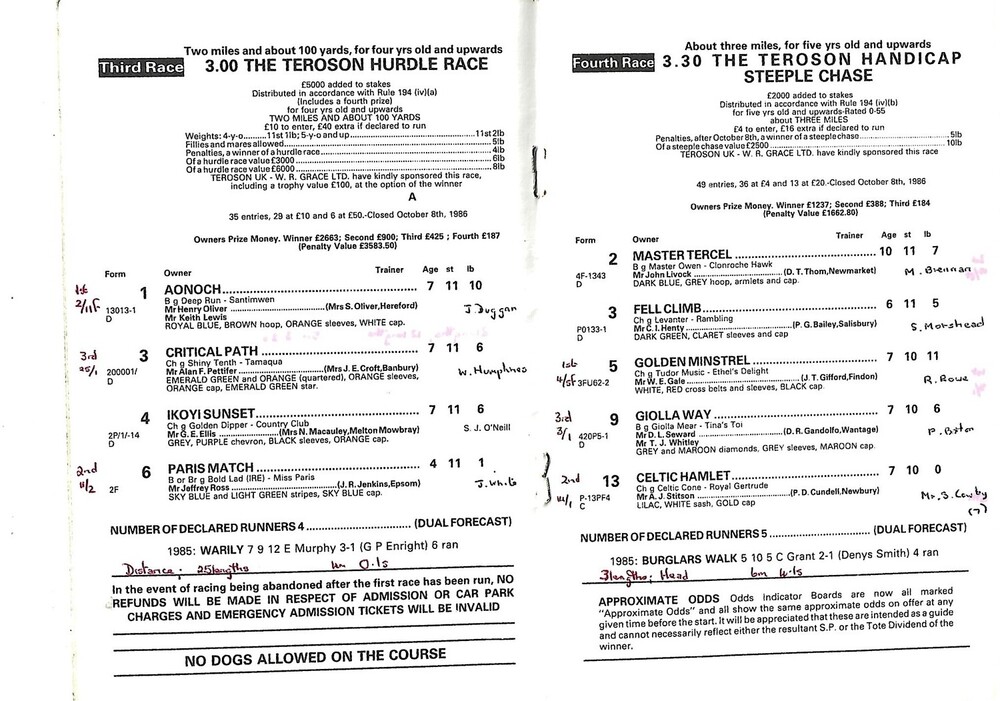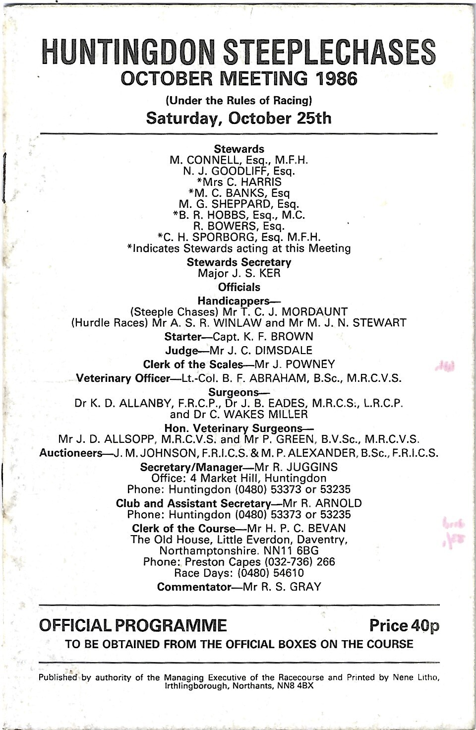 1986 Huntingdon October Meeting (25/10/1986) Horse Racing Racecard