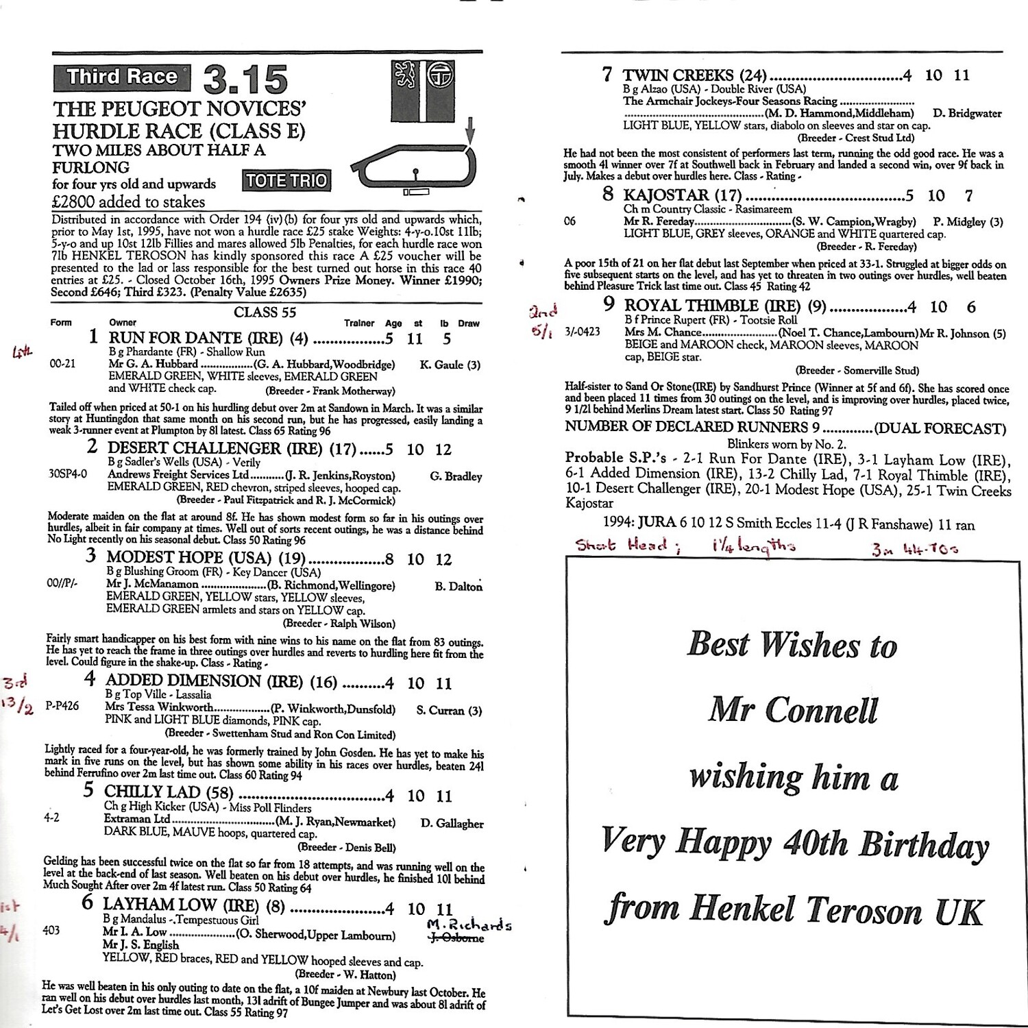 1995 Huntingdon October Race Meeting (21/10/1995) Horse Racing Racecard