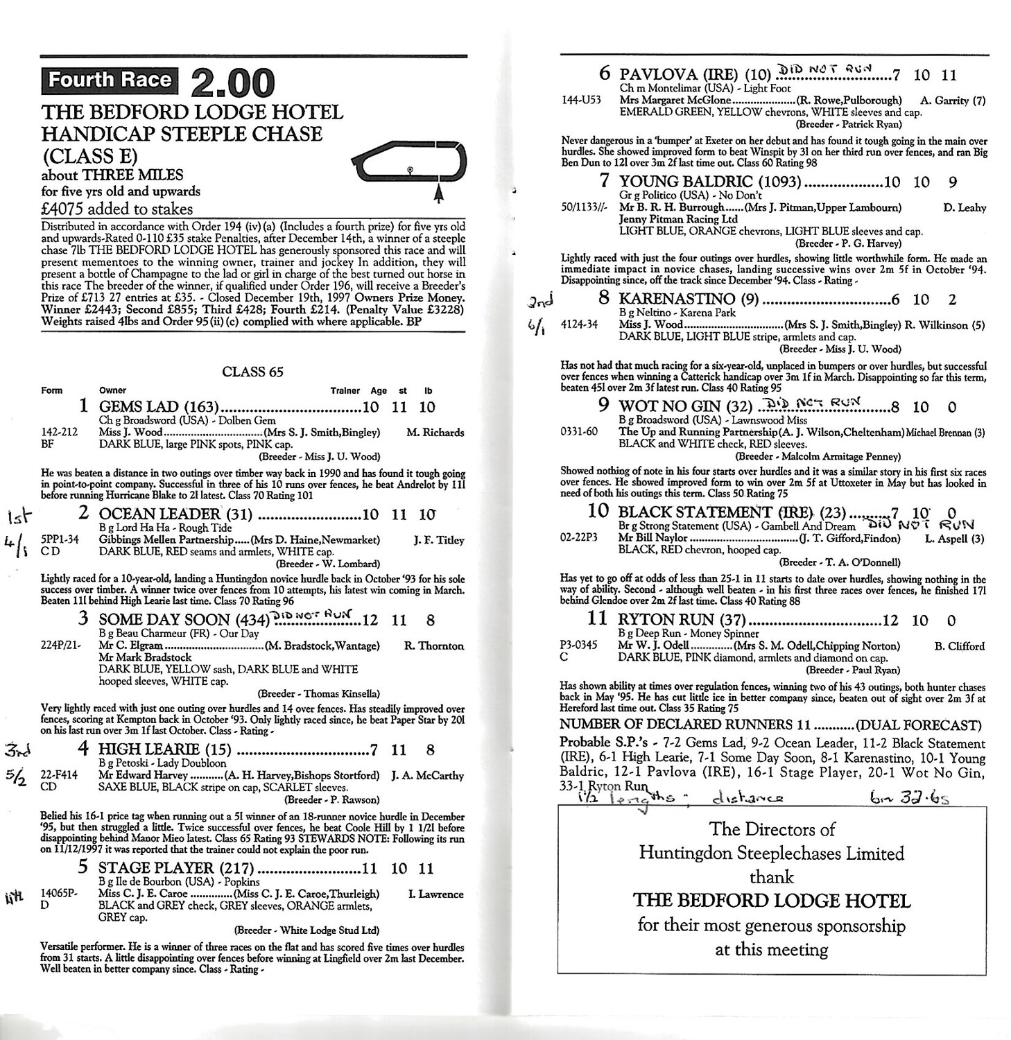 1997 Huntingdon Boxing Day Race Meeting (26/12/1997) Horse Racing Racecard