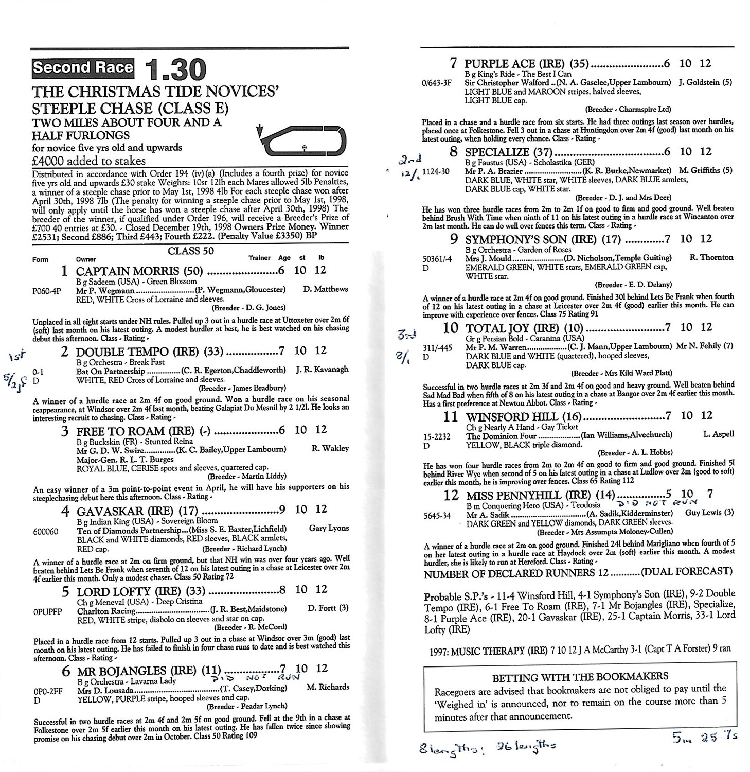 1998 Huntingdon Boxing Day Race Meeting (26/12/1998) Horse Racing Racecard