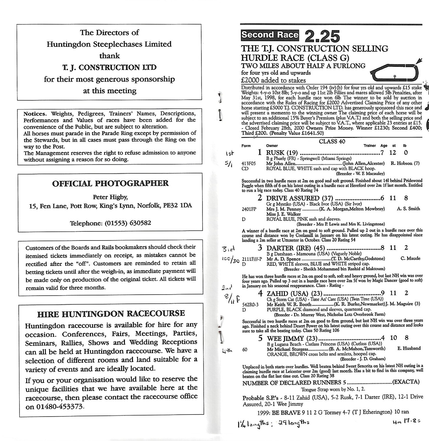 2000 Huntingdon The Irish/Scottish Race Meeting (04/03/2000) Horse Racing Racecard