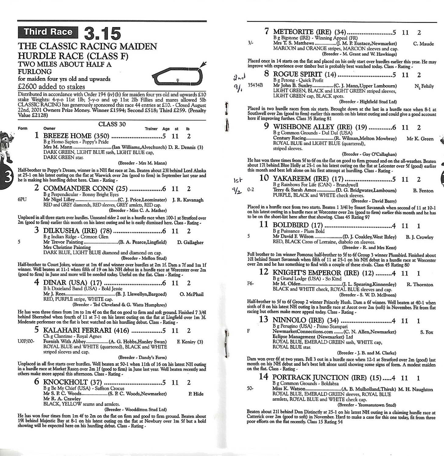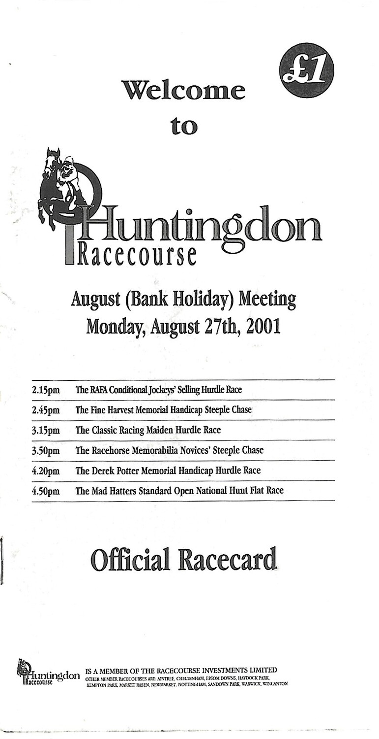 2001 Huntingdon August Bank Holiday Race Meeting (27/08/2001) Horse Racing Racecard