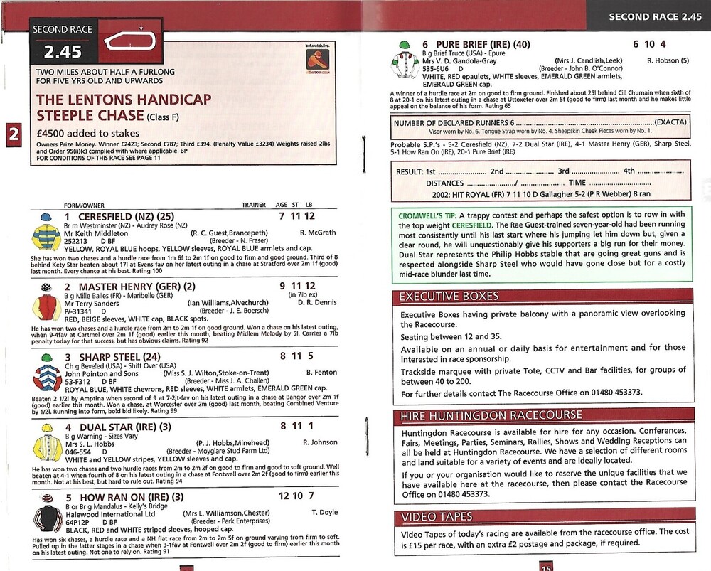 2003 Huntingdon August Bank Holiday Race Meeting (25/08/2003) Horse Racing Racecard