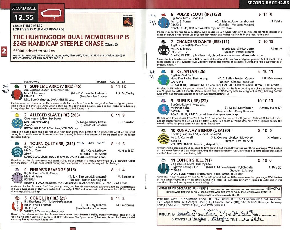 2003 Huntingdon Boxing Day Race Meeting (26/12/2003) Horse Racing Racecard