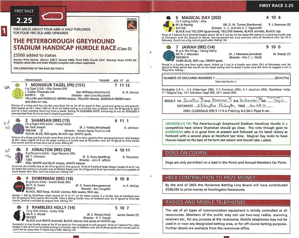 2003 Huntingdon Mascot Grand National Race Meeting (28/09/2003) Horse Racing Racecard