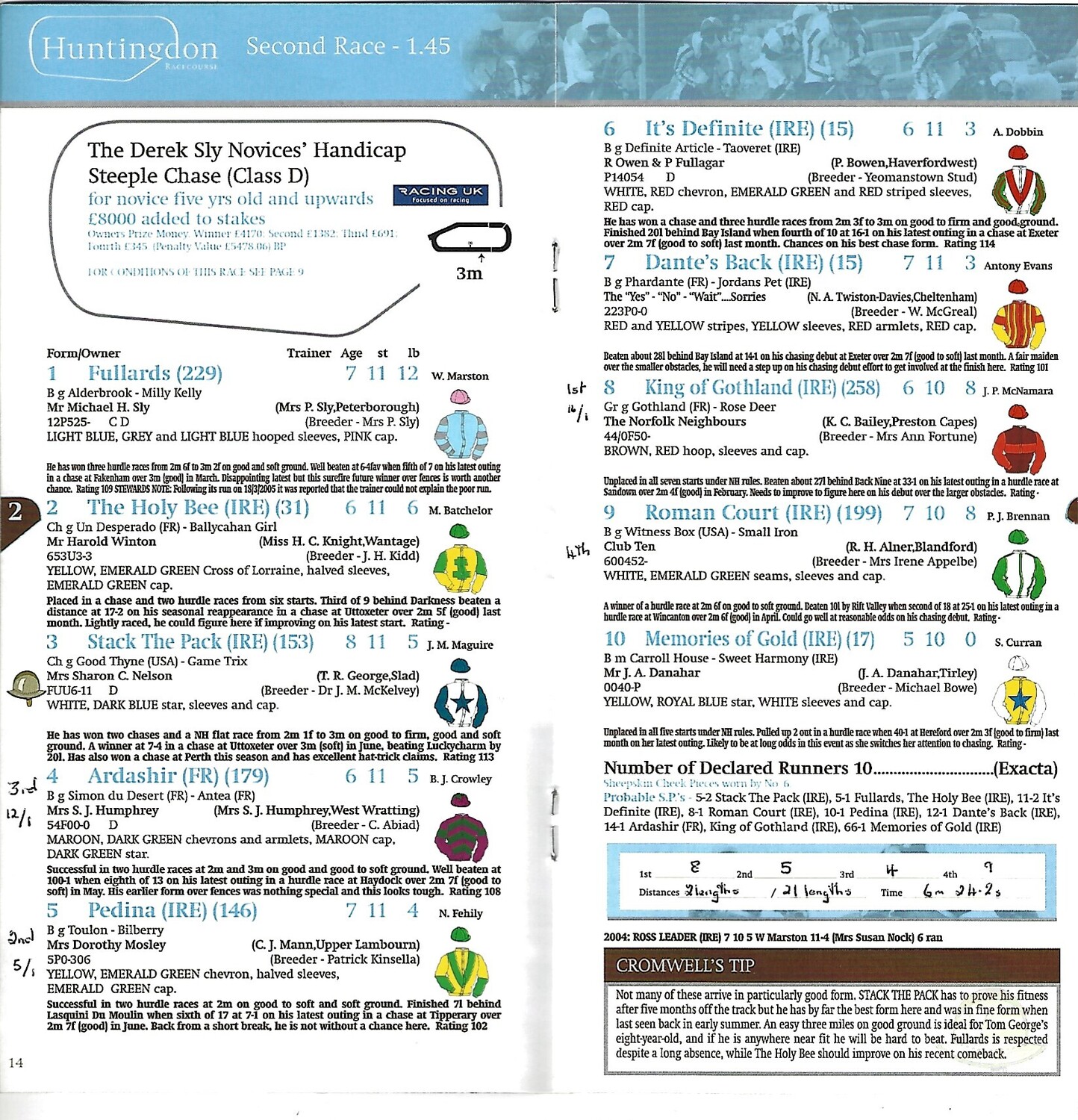 Slight creasing, discolouration, annotation in ink on runners/riders pages. (as per photo).