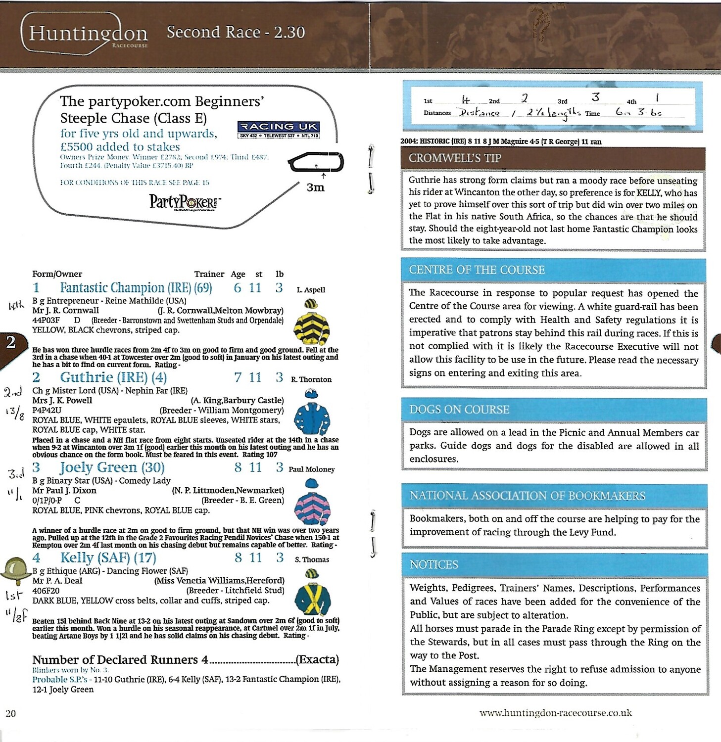 2005 Huntingdon March Race Meeting (28/03/2005) Horse Racing Racecard