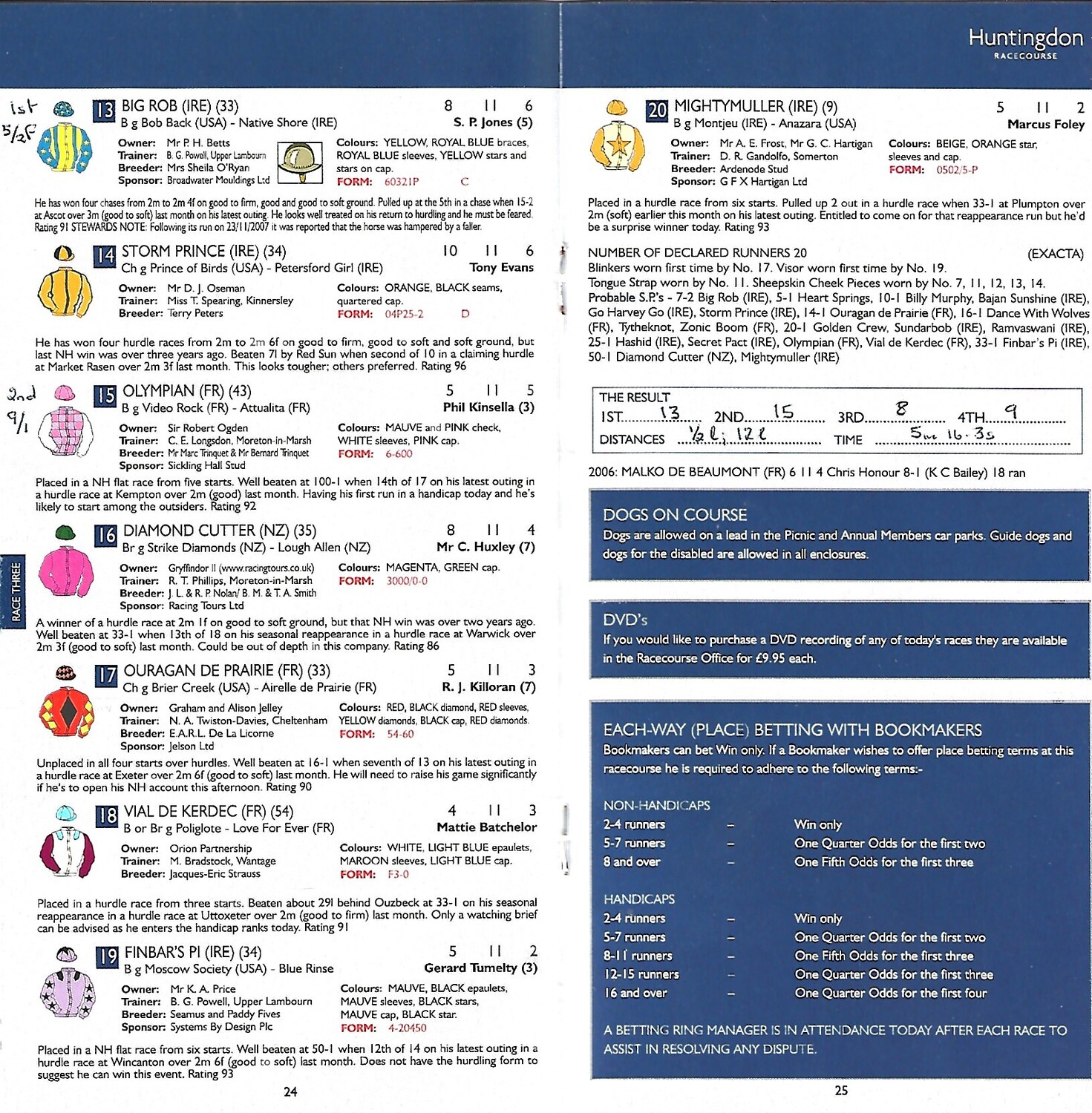 2007 Huntingdon Boxing Day Race Meeting (26/11/2007) Horse Racing Racecard