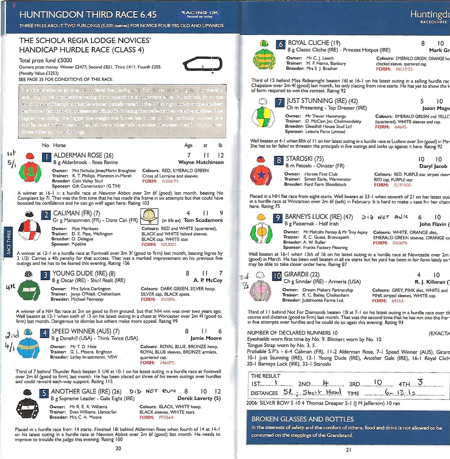 2007 Huntingdon May Thursday Evening Race Meeting (03/05/2007) Horse Racing Racecard