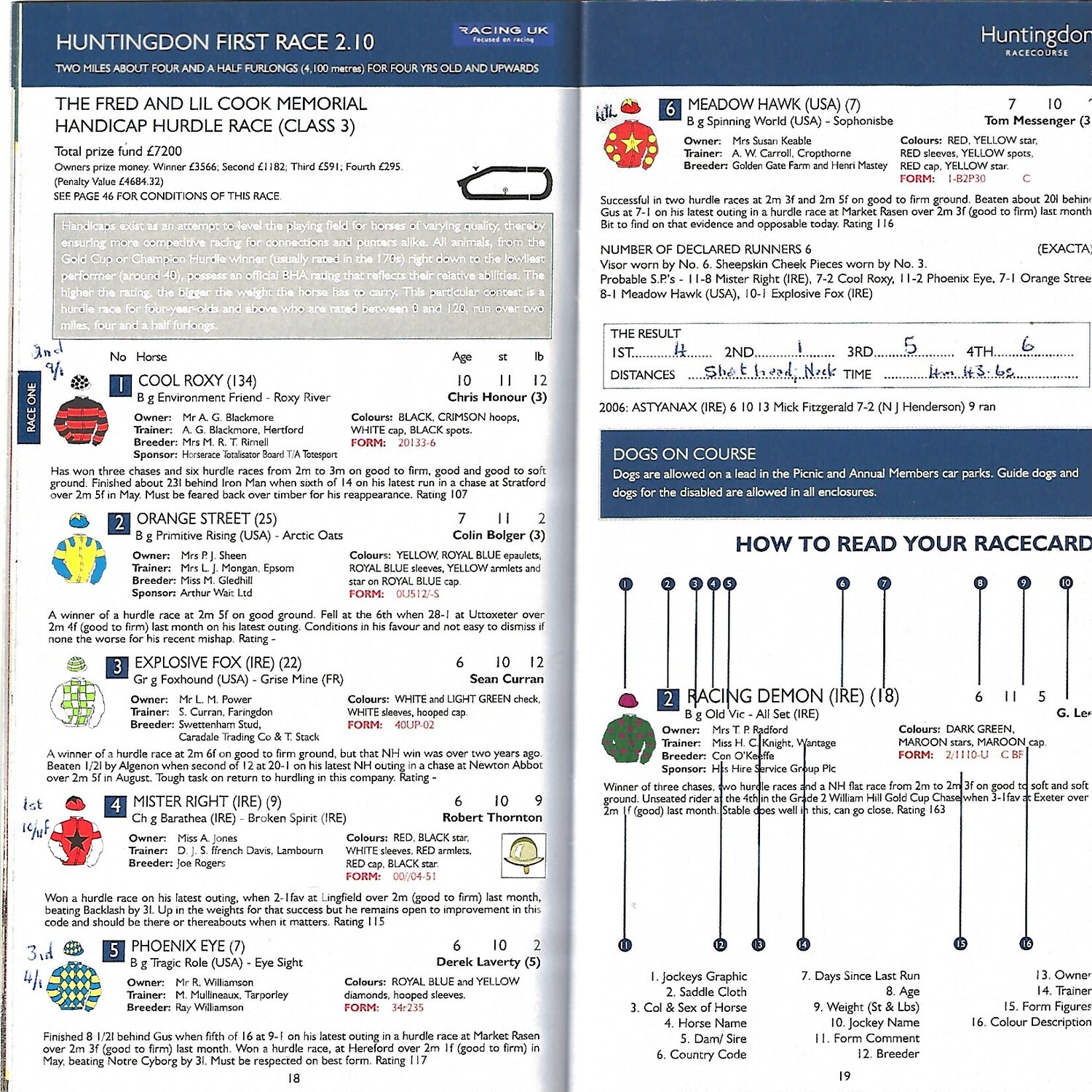 2007 Huntingdon The John Smith's Mascot Grand National Day Race Meeting (07/10/2007) Horse Racing Racecard