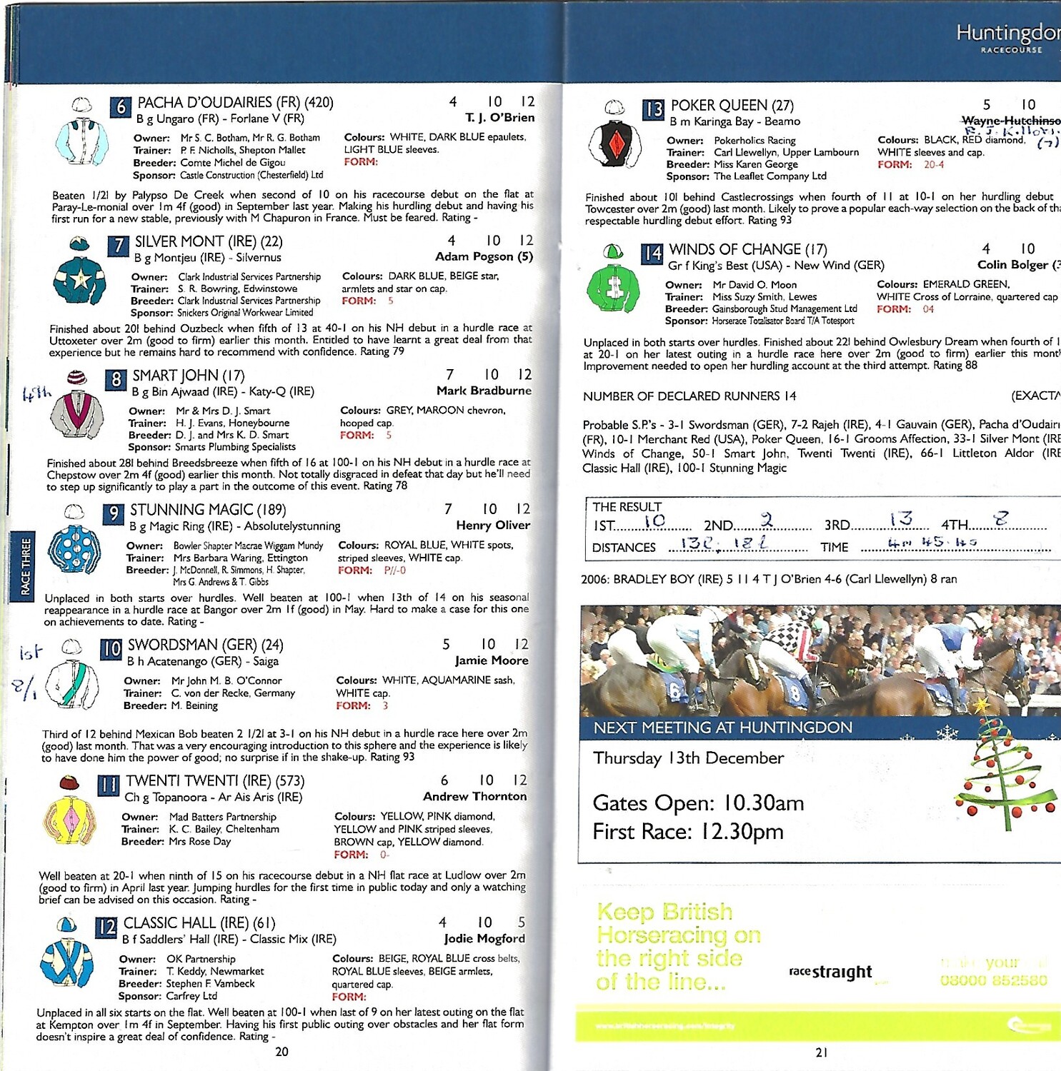 2007 Huntingdon Totesport Peterborough Chase Day Race Meeting (24/11/2007) Horse Racing Racecard